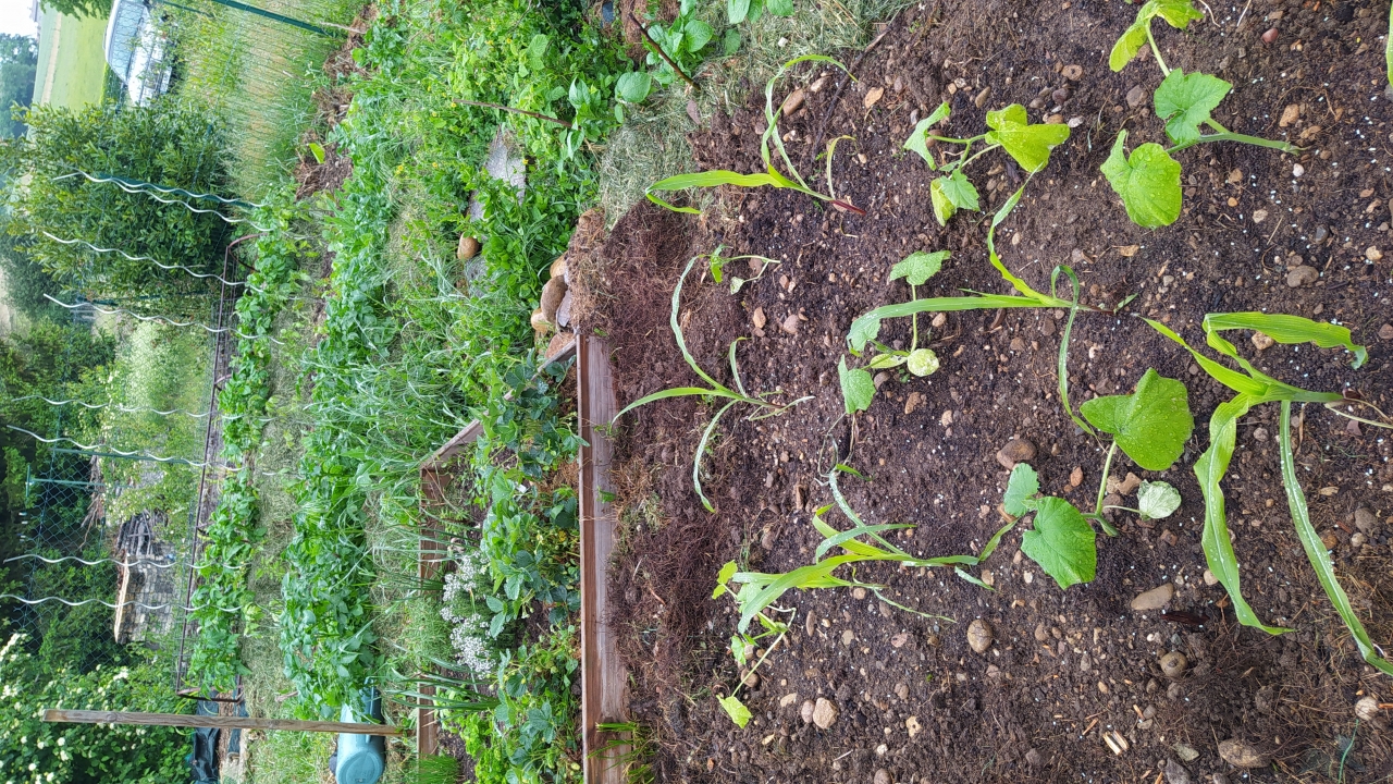 | Dire merci | j'ai prévu de faire grimper le butternut et le potimarron .. l'an dernier mon butternut a été s'accrocher a un treillis donc je me suis dit je mets en vertical .. a voir ce que ca va donner les concombre aussi on leur "tuteur" |