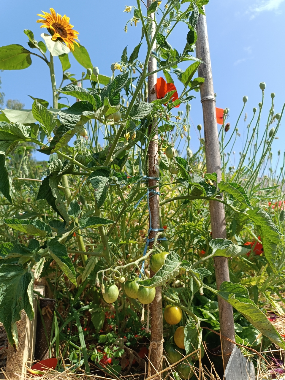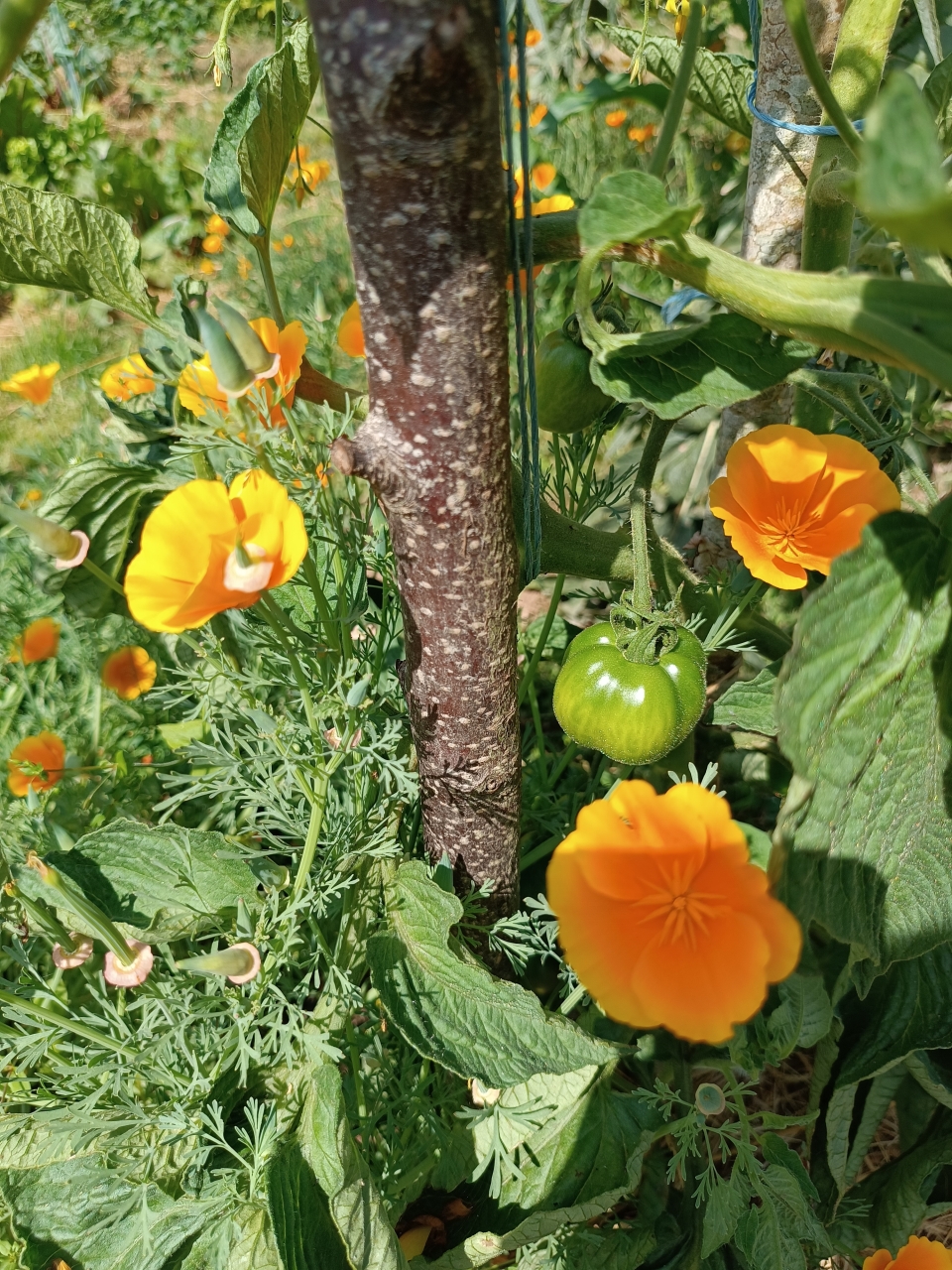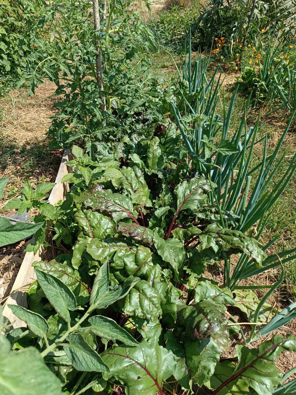 | Dire merci | Oui, les plantes potagères d'été aiment la chaleur mais pas forcément l'ensoleillement maximal. Ici, j'ai tenté: - mettre des fleurs au milieu des courgettes. C'est pas mal ,mais j'ai trop serré, les courgettes sont un peu à l'étroit (mais elles donnent bien, faudra juste un peu moins serrer l'année prochaine) : ça protège de l'évaporation et ça attire les pollinisateurs. J'utilise le grillage aussi, les haricots ont les pieds bien au frais et les fleurs bien dispo pour les pollinisateurs. Il reste des orties, je vous dirais bien que c'est un choix délibéré pour protéger le sol et attirer les coccinelles, la vérité c'est que même en pleine sécheresse, ça revient ![]() Il fait très sec ici et je n'arrose qu'avec parcimonie mes pieds, pourtant ils sont bien verts alors qu'on voit bien qu'autour c'est tout sec/desséché). ![]() ![]() ![]() ![]() - planter des arbres fruitiers et cultiver à leur pied. Pour l'instant ils ne font pas assez d'ombre pour me rendre compte si c'est efficace ou pas. |