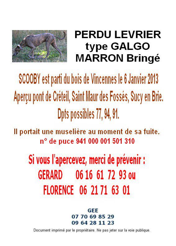 | Dire merci | SCOOBY VIENT D ETRE RETROUVER !! T Il est sain et sauf, à été rétrouvé à 10 km de sa maison ! Il en a parcouru une 30 aine en une semaine !! |