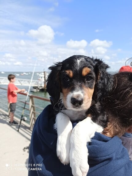 | Dire merci | Et ben non loupé ,pendant un temps on a cru que le papa avait du golden mais non c'est un berger australien et la maman une pure Setter anglais,en fait elle a le nez de papa ,les oreilles de maman;le corps de maman et la couleur donnée par papa .Mais j'avoue parfois ça fait un poil tête d'épagneul ![]() |