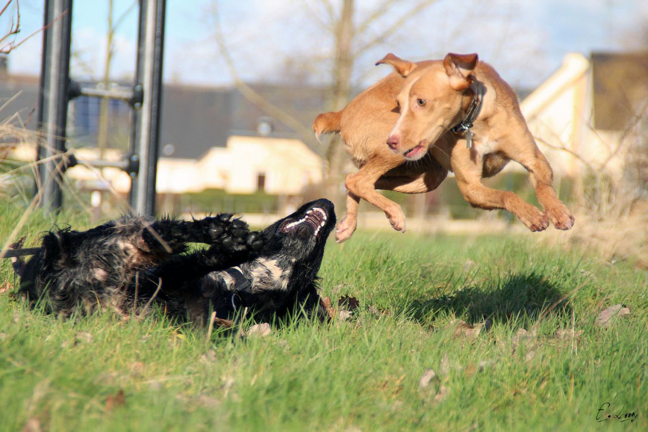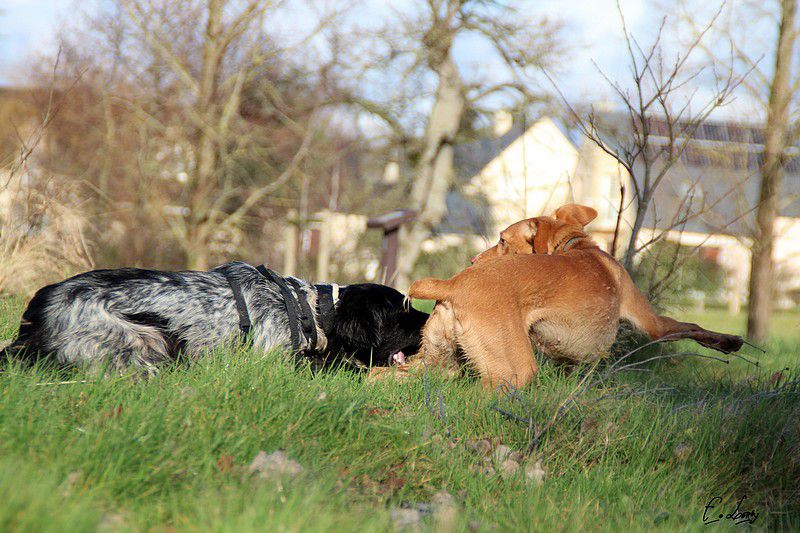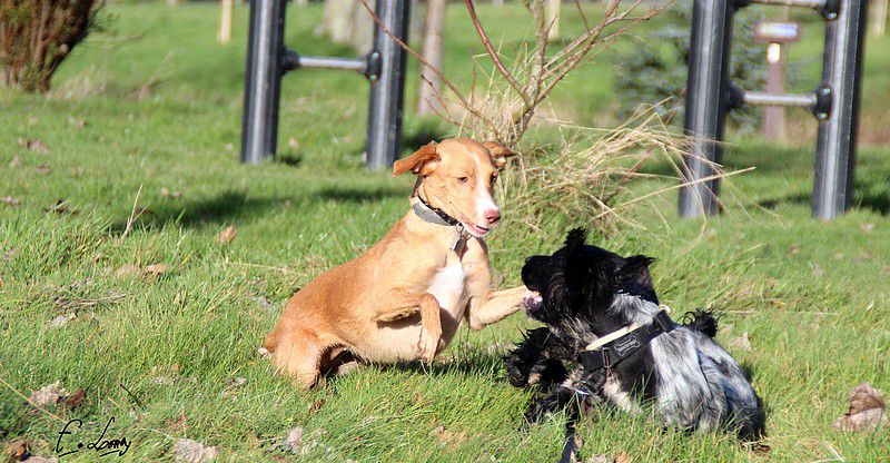 | Dire merci | Khyra, oui elle est super, pas de betises, propre ... Un ange !!! Niveau éducation, il y a pas mal de boulot mais je pense qu'elle comprendra vite. Pour l'instant, mon amie lui laisse un petit peu de temps pour s'habituer à sa nouvelle vie ... Elle s'habitue d'ailleurs très bien, elle est un peu perdue et se référe vraiment à mon amie (elle la suit partout). Elle ne sait pas trop ce qu'elle a le droit de faire, de ne pas faire, elle apprend encore ! Elle reprend petit à petit un peu de poids, elle ne se gratte presque plus ! Et alors elle ADOOOOOORE les balades et MON DIEU ce qu'elle tire ![]() Je suis étonnée de les voir jouer comme ça, je n'ai jamais vu ma chienne jouer comme ça avec un chien alors je suis bien contente !! Ca fait plaisir hein de voir ces loulous heureux après ce qu'ils ont vécu !!! C'est grâce à vous les filles, mille merci :loveUne petite dernière rien que pour vous ![]() |