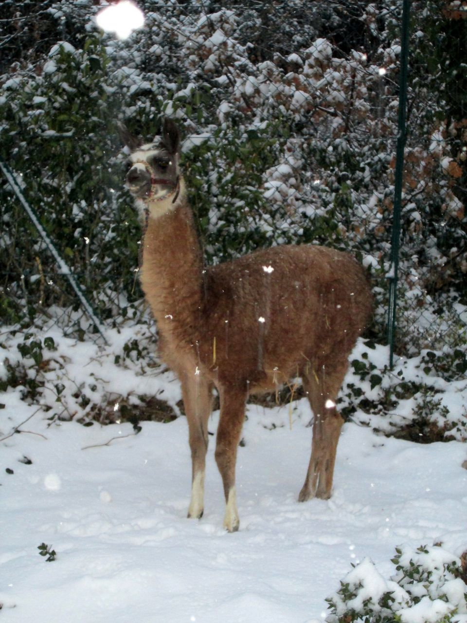 | Dire merci | Ca se croise aussi! Lama X dromadaire: ![]() Pour répondre aux questions l'enclos de Nell n'est pas très grand et en pente,mais il est toujours sec et caillouteux sur une bonne partie.Une fois par semaine elle va la journée dans l'enclos de sa copine 2000m² et deux fois par semaines c'est balade dehors... C'est un bébé de 9 mois et encore un peu sauvage,donc elle sera définitivement avec sa copine quand elle sera bien familière. Là c'est une photo avec ses parents: ![]() Sa mère est derrière elle et le père au fond (noir et blanc) Son père: ![]() C'est de la même espèce que la photo de riverjap,qui lui n'a pas été tondu... |