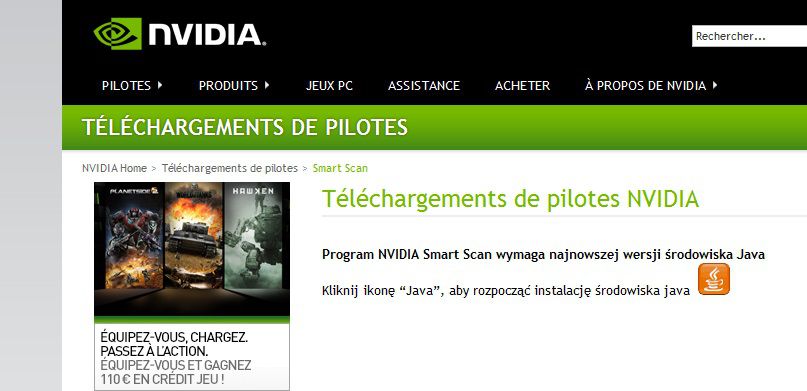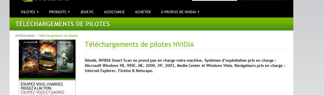 | Dire merci | Lien Tu cliques sur "lancer la détection", puis tu installes le plugin (ça va très vite), et tu reviens sur le site pour Lancer la Détection. Tu vas avoir une liste de tous les pilotes qui ne sont pas à jour, avec des liens pour télécharger les pilotes les plus récents (évite les pilotes Bêta, quand il y a un pilote en Bêta le site t'en propose toujours un autre plus abouti et testé, prend celui là). Il ne te reste qu'à télécharger ton pilote de carte graphique et à l'installer manuellement. (Tu auras aussi le modèle exact de ta carte graphique, et de tous tes autres matériaux, c'est vraiment très pratique). |