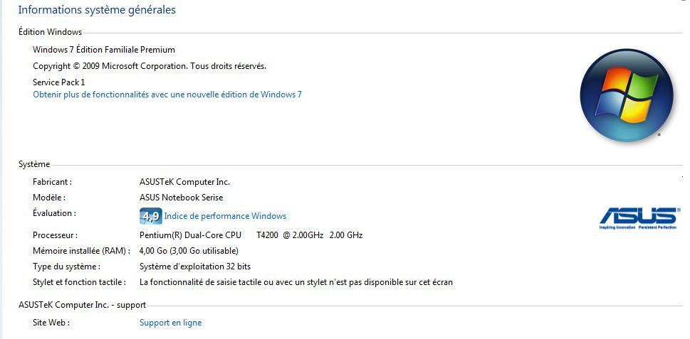 | Dire merci | Alors ça me dit juste que c'est un Asus mais pas le modèle. Tu trouveras le modèle sous le pc ![]() |