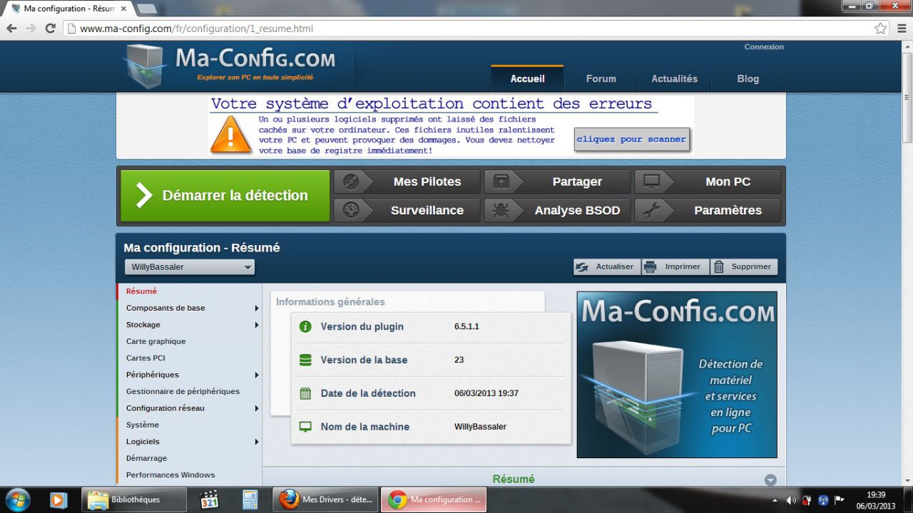 | Dire merci | si c'était un pb de config logiciel ça apparaitrait aprés 4 ans oui clique sur détection .. |