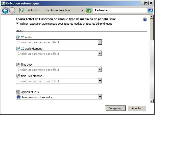 | Dire merci | url=https://www.1cheval.com/membre/services/photos/]![]() [/url] tu copie ça Panneau de configuration\Matériel et audio\Exécution automatique dans la barre de titre de l'explorer et tu va obtenir la fenêtre que je t'ai collé plus haut je pense que c'est la qu'il faut que tu configue l'action par défaut a l'insertion d'u dvd |