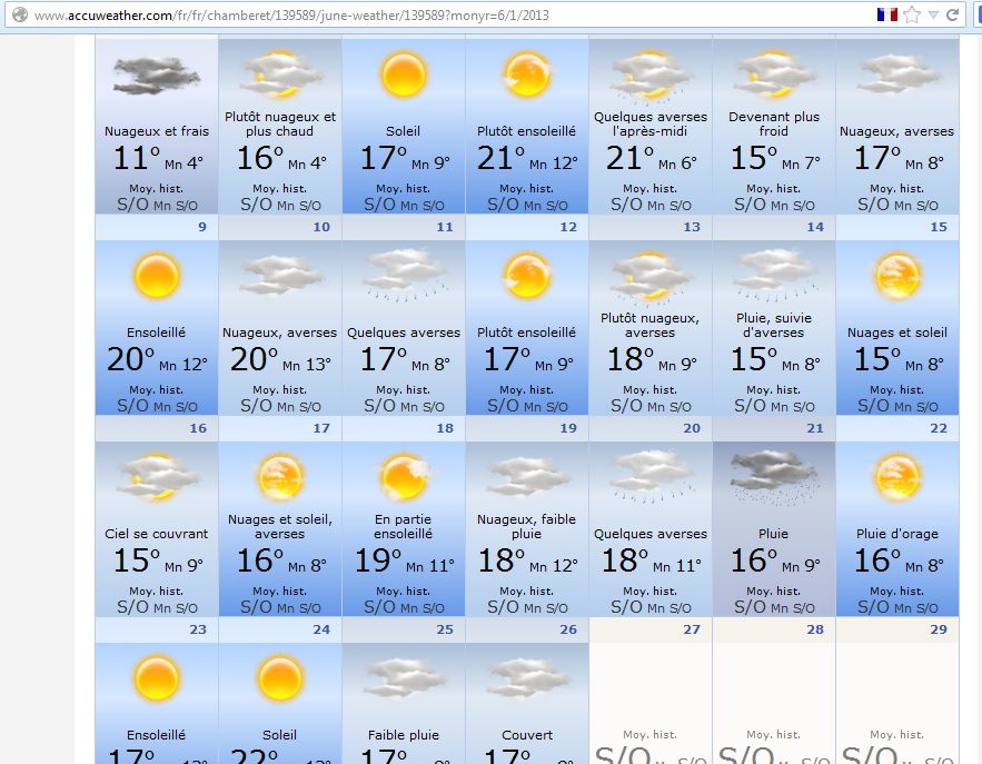 | Dire merci | Non en effet je suis en Rhône Alpes, et ayant bossé au milieu des friteuses pendant l'été, j'aurai bien aimé un peu de fraicheur extérieure (Mais même dans le "sud" les gens râlaient sur le mauvais temps ) |