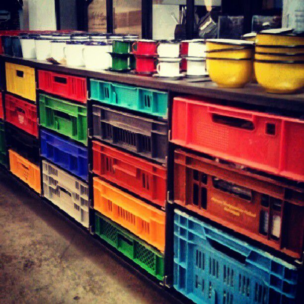 | Dire merci | Et je laisse encore mon petit préféré de ce jour pour la fin... Dans l'idée du meubles à valises, le meuble de rangement en caisses agricoles (on peut l'imaginer dans le garage ou dans un atelier... Moi, je le vois même dans une cuisine, plan de travail de rêve):![]() |