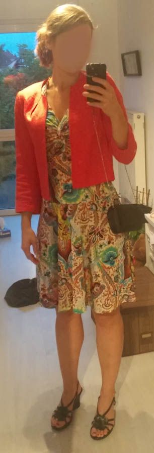 | Dire merci | Je partirai sur une veste et une chaussure un peu plus habillees pour ma part. En tous cas pas la rouge, je trouve que le style contraste trop avec le reste de ta tenue. |