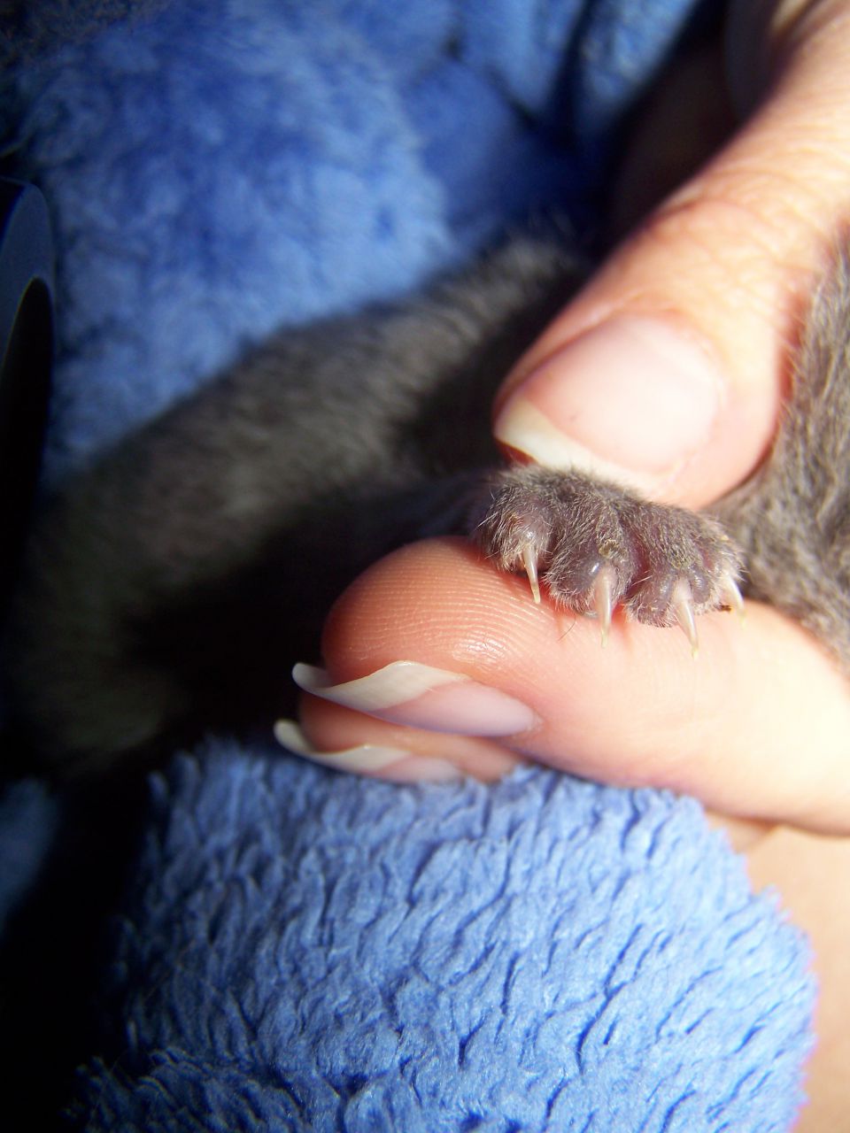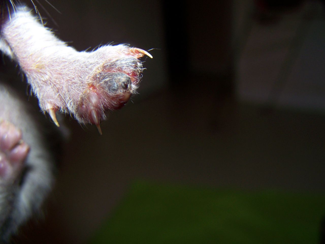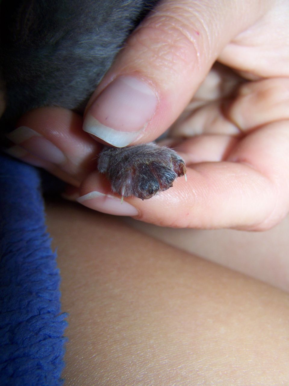 | Dire merci | mais meme si les coussinets sont vivants, j'ai bien peur qu'on douve couper, elle peut pas rester avec un demi doigt vivant non? de plus si c'est mort, ca va pas grandir... or un doigt adulte fait 1cm de long. |