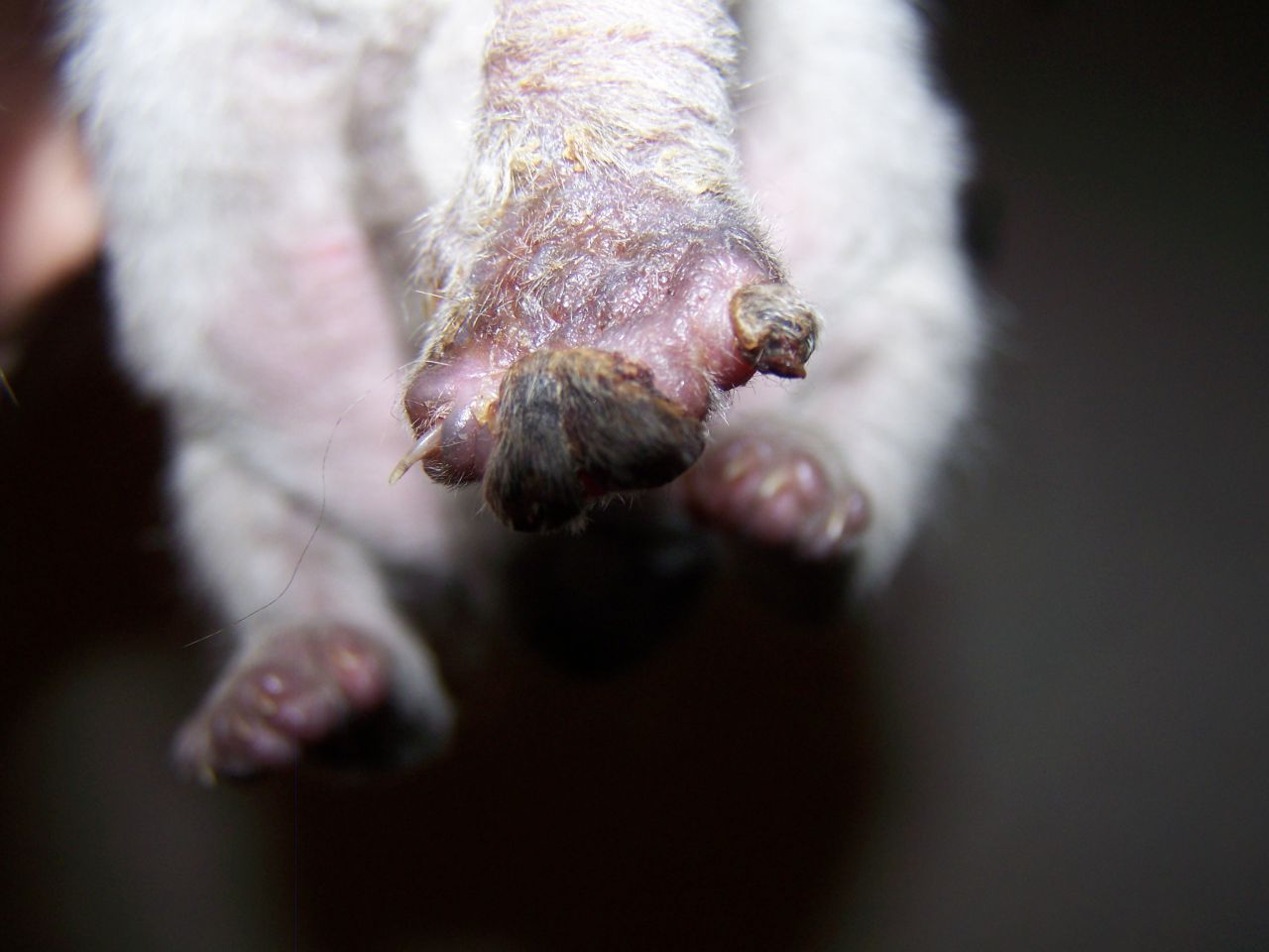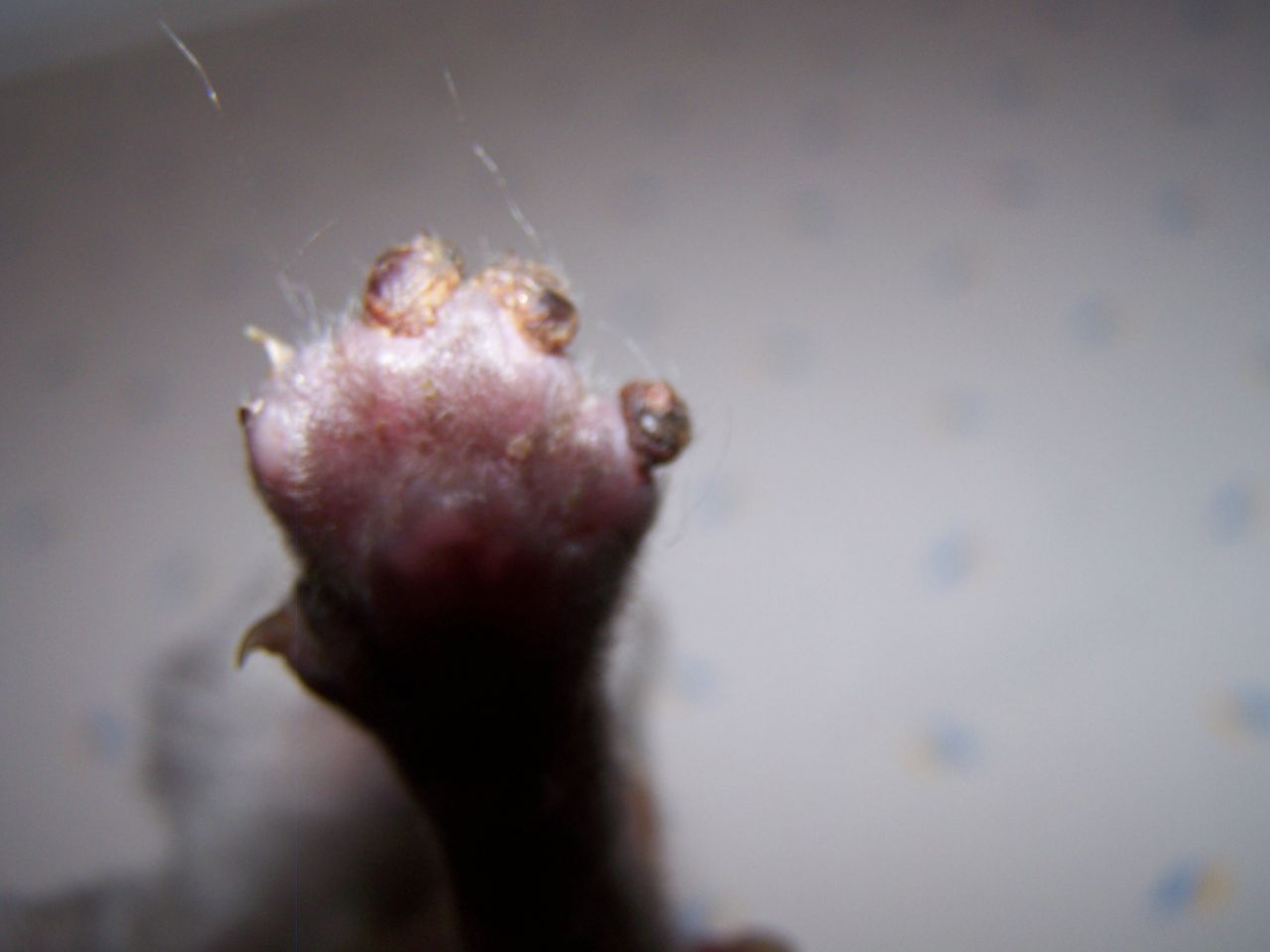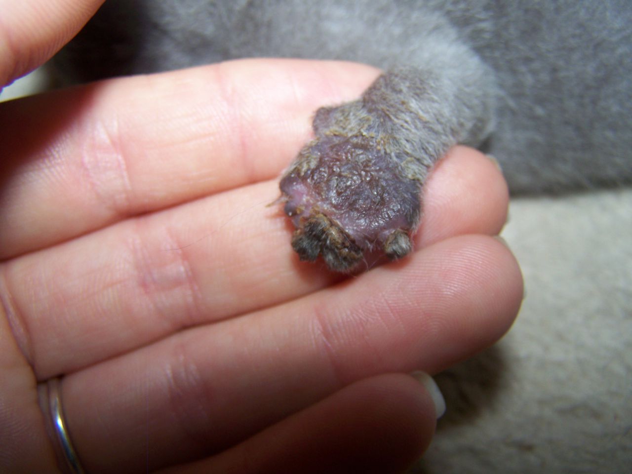 | Dire merci | bilan tres mitigé ce soir... ![]() une 3e griffe est tombee, et un autre doigt semble touché... de plus, elle me sort une hernie ombilicale ![]() sinon elle mange, grossit, est vive et alerte je sens que le veto la semaine prochaine sera pas du luxe pour faire le point. |