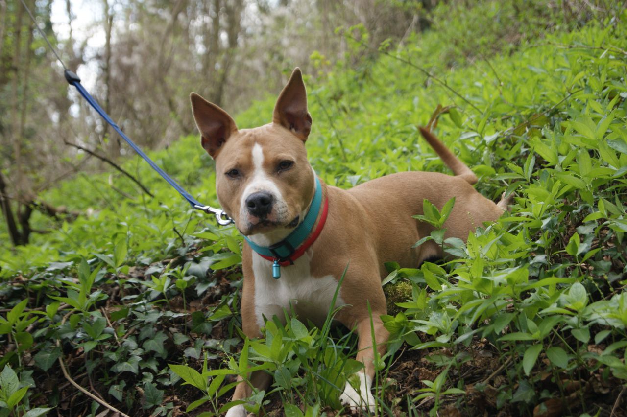 | Dire merci | Scooper, ce n'est pas un gros chien, mais les mâchoires d'un staff, c'est pas de la gnognotte non plus. Elle est magnifique en tout cas. Au club canin, on a de très gros ballons qui à l'origine sont pour les cochons. Ils résistent plutôt bien aux attaques de notre "autiste des ballons". |
