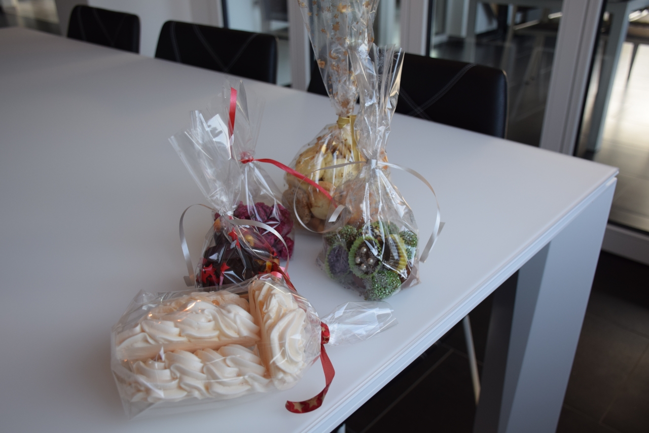 | Dire merci | ![]() Ici, j'ai offert des sachets composés d'orangettes et de pralines roses (idées piquées sur ce poste , de meringue, de pralinés à la crème et truffes au chocolat aromatisées à l'eau de vie (mirabelle, damassine et absinthe). Et pour finir, assortiment de biscuits de Noël : milanais, étoiles à la cannelle, baisers à la noix de coco, sablés, caramellinis et bouchées aux noisettes.Toutes la famille a été ravie |