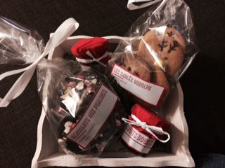 | Dire merci | Salut les filles ! Mon chéri m'a offert une machine à coudre à noel donc l'année prochaine, je ferais encore plus de cadeaux moi même ! J'ai fini mes paniers, le premier sera offert ce soir, voici les photos et le résultat final de mes paniers même s'ils sont assez simples. les mendiants en sachet ![]() la préparation des sablés ![]() Et les paniers résultat final ![]() |