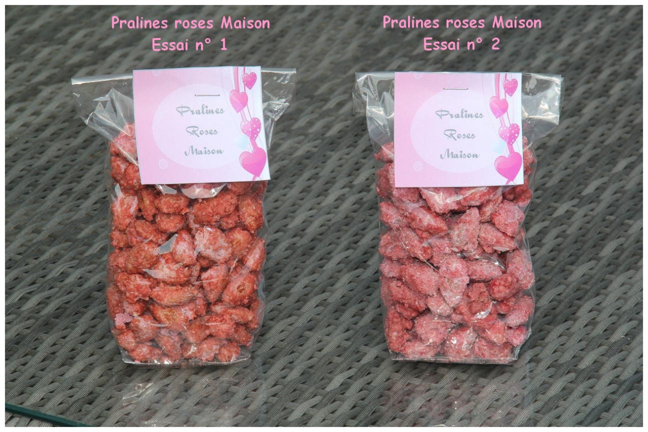 | Dire merci | Voici la recette que j'utilise: Pralines roses 300 gr d'amandes 300 gr de sucre semoule 180 gr d'eau du colorant rouge Commencer par torréfier les amandes au four en les plaçant sur une feuille de papier sulfurisé dans le lèche-frite du four ou sur une plaque à pâtisserie,12 minutes à 160°. Mettre le sucre,l'eau,le colorant et les amandes dans une casserole à fond épais et commencer à chauffer sur feu moyen et remuer régulièrement.Ca prend un peu de temps,l'eau doit s'évaporer pour former un caramel. Au bout d'un moment le mélange va bien s'épaissir,le caramel va napper votre cuillère,il faudra retirer la casserole du feu et mélanger vigoureusement.Le caramel va commencer à sabler,le sable doit recouvrir toutes les amandes (si le caramel ne sable pas c'est qu'il n'était pas encore suffisamment cuit donc remettre sur le feu). Puis remettre la casserole sur le feu pour que le restant de caramel sablé fonde et vienne enrober les amandes,continuer de bien mélanger.Il faut complètement enrober les amandes. Déposer les amandes sur une feuille de papier sulfurisé,attendre quelques minutes qu'elles soient moins chaudes et les séparer en frottant entre vos mains. Laisser refroidir. Pour pouvez les préparer à l'avance et les conserver dans un sachet à congélation ou dans une boite. lien pour plus de photos: Lien Moi je n'arrive pas à avoir quelque chose d'aussi fluo :'( |