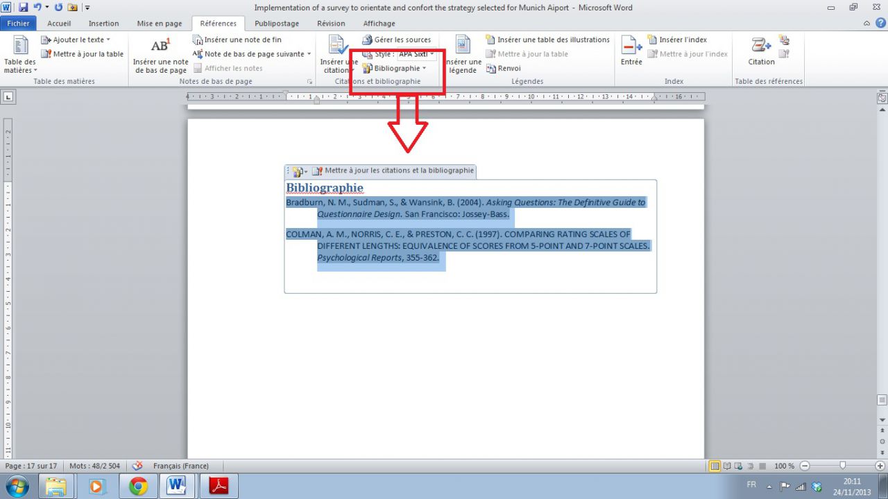 | Dire merci | Elle continue d'ailleurs, mon boulet, elle veut que le groupe se réunisse mardi : "Maybe we can meet an Tuesday at 17:00 in order to clarify personal differences, the strategy for the presentation and grading." = "On peut peut être se voir mardi à 17h pour clarifier des différents personnels, la stratégie pour la prez et le système de notation" Bah ouais tiens ! Lavons toutes les deux notre linge sale en public ! En fait, plus j'y pense et plus je la vois comme une personne au comportement immature et butée. Mais je l'attend de pied ferme mardi si elle attend une soumission de ma part quant au fait qu'elle ait raison sur tout ![]() Sinon, pour te répondre Chrysalis, voici le beau screeshot que j'ai justement envoyé à cette chère amie (Word 2010): ![]() Tu peux voir un icone "Insérer une citation". Pour donc sourcer ce que tu dis tu cliques dessus, tu choisis le type (ouvrage, article, page web, etc.) et ensuite tu remplis tout ce qui t'es demandé. Tu peux aussi choisir le type de présentation (APA Guidelines par ex). C'est très pratique car si tu cites plusieurs fois ton auteur par ex, il te suffit de cliquer à nouveau sur "Insérer une citation" et de le sélectionner parmi toutes les sources déjà enregistrées. Ensuite à la fin de ton doc il te suffit de cliquer sur l'icone Bibliographie et d'en insérer une automatique pour que toutes les sources que tu as référencées apparaissent bien proprement et dans l'ordre alphabétique. |