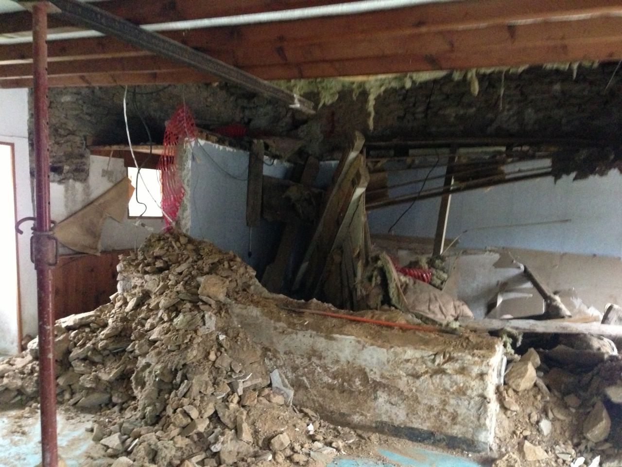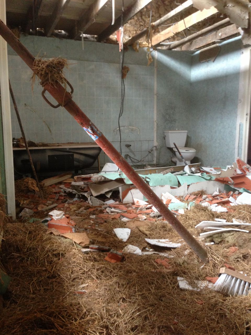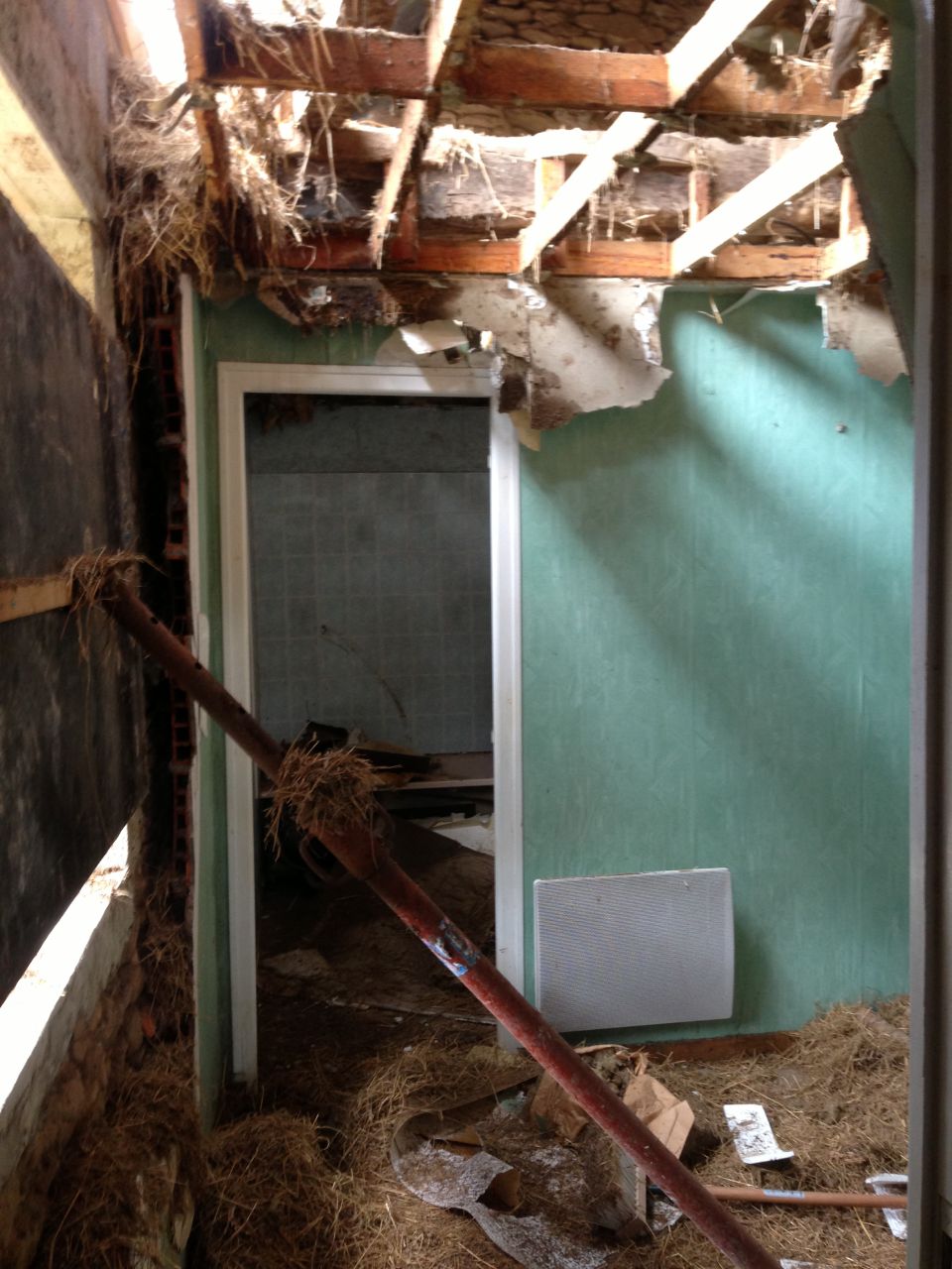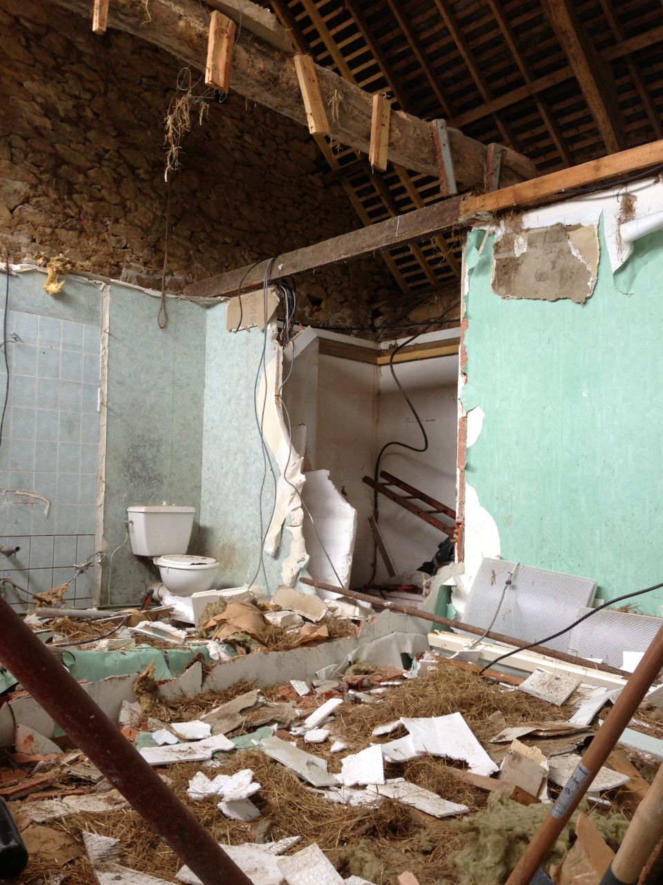 | Dire merci | Petite surprise quand on fait tomber le plancher ,y'a du foin en quantité et des habitants (enfin les cadavres tout séchés d'anciens habitants!![]() les cloisons entre la salle de bain et la 2ème chambre sont tombées ![]() notre future cuisine! ![]() parti le plancher!! ![]() ma cuisine ,un peu plus propre! ![]() |