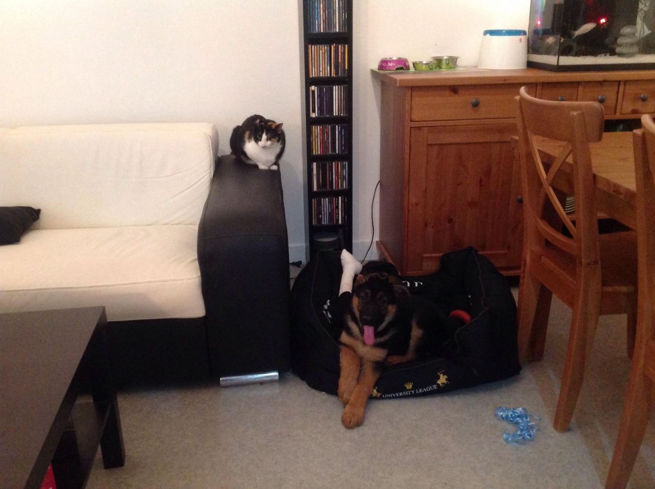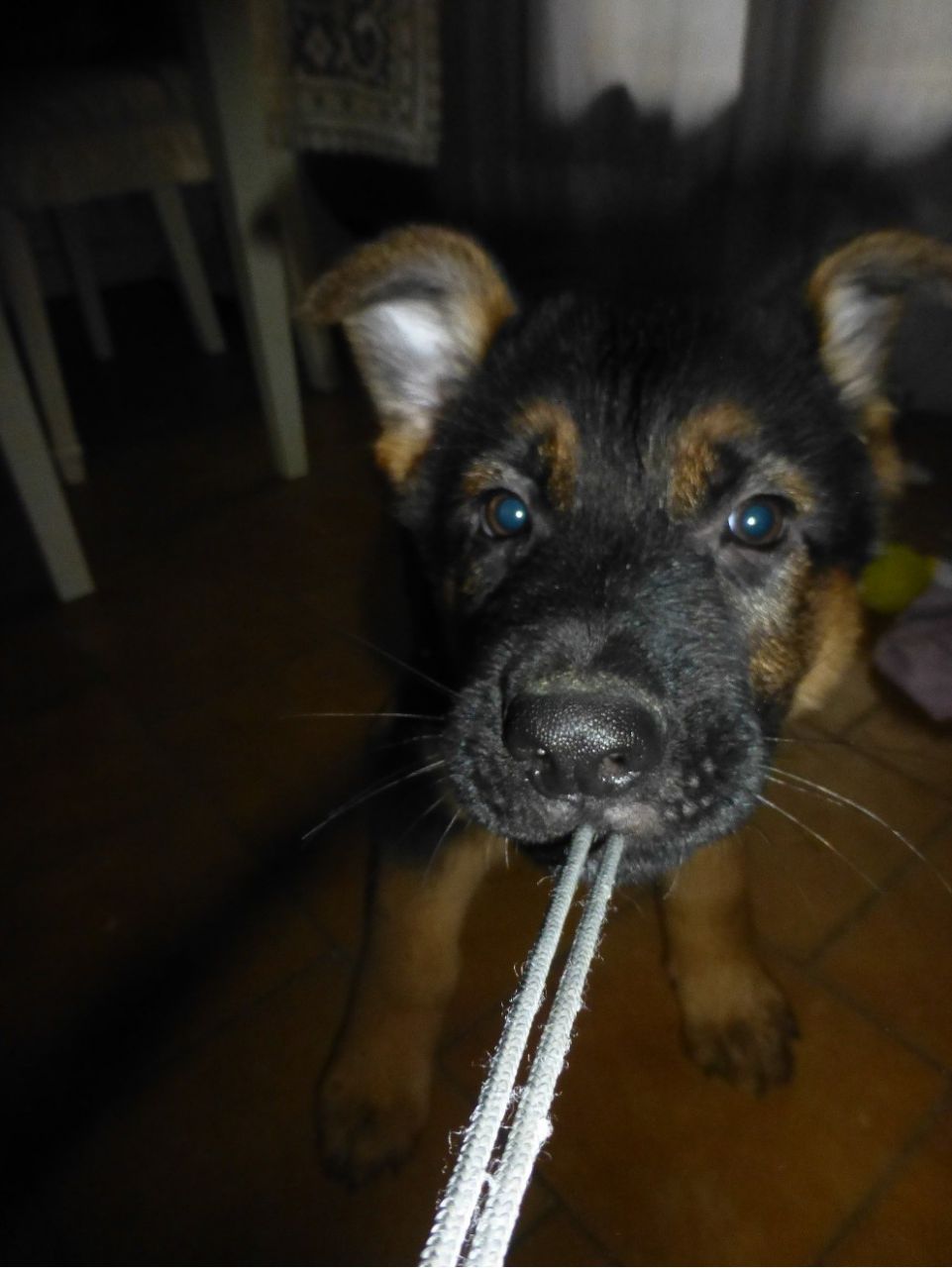 | Dire merci | 10 semaines, ça fait... Même pas 3 mois. Donc oui, il est déjà bien costaud. |