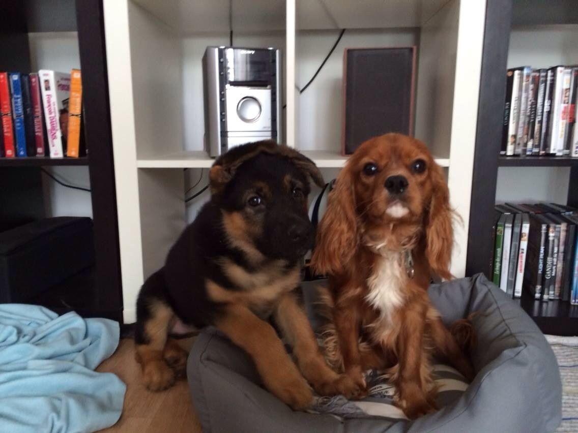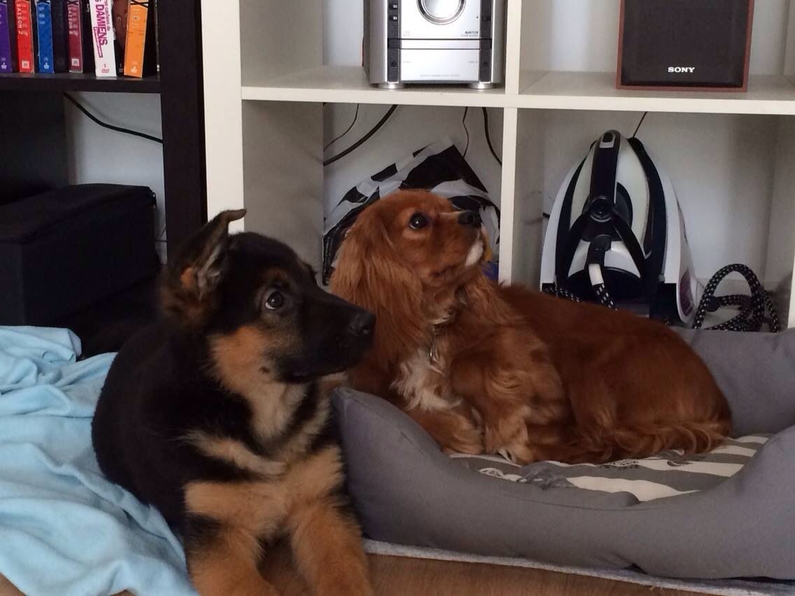 | Dire merci | On ne se rend pas trop compte sur la photo mais le panier fait 75cmx65 ^^ de toute façon c était juste histoire d avoir un panier avec des chevaux dessus ![]() On s attend à ce qu il le bouffe et un autre de plus d un mètre de Long est déjà commandé! Chaton réagit plutôt bien je pense que le feliway vaporisé depuis plus d une semaine a sûrement aidé. Elle garde la plupart de ses habitudes mais on l a sent un peu sous tension ce qui reste normal. Concernant l intéressé il me surprend heure après heure: 2h30 de route pour le ramener il n a chouiné qu une fois au départ on s est arrêté au cas ou envie pressente bingo! Petit pipi et plus rien jusqu a l arrivée. On est allé dans une animalerie il a un peu aboyé sur un gros chien on l a repris en gardant à l esprit que c était une de ses premiers visites hors de chez nous avec nous qu il ne connaissait pas. Cette nuit un petit pipi a 4h du matin mais c est de ma faute, il a chouiné j ai sauté sur mon jean mais en me retournant il se soulageait dejà^^ sinon depuis tout dehors (je le promène toutes les heures, heures et demie environ). Et aujourd'hui rencontre du chiot cavalier king de 6 mois d un couple d amis, ils e sont bien amuses! Pour finir première rencontre avec les chevaux même pas peur! Il est trop génial ce petit chien ^^ |