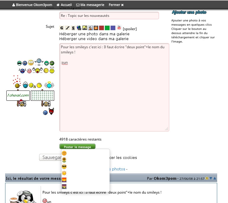 Déconnecté | comment on fait pour mes smiley ? unMessage édité le 18/02/14 à 15:19 |
