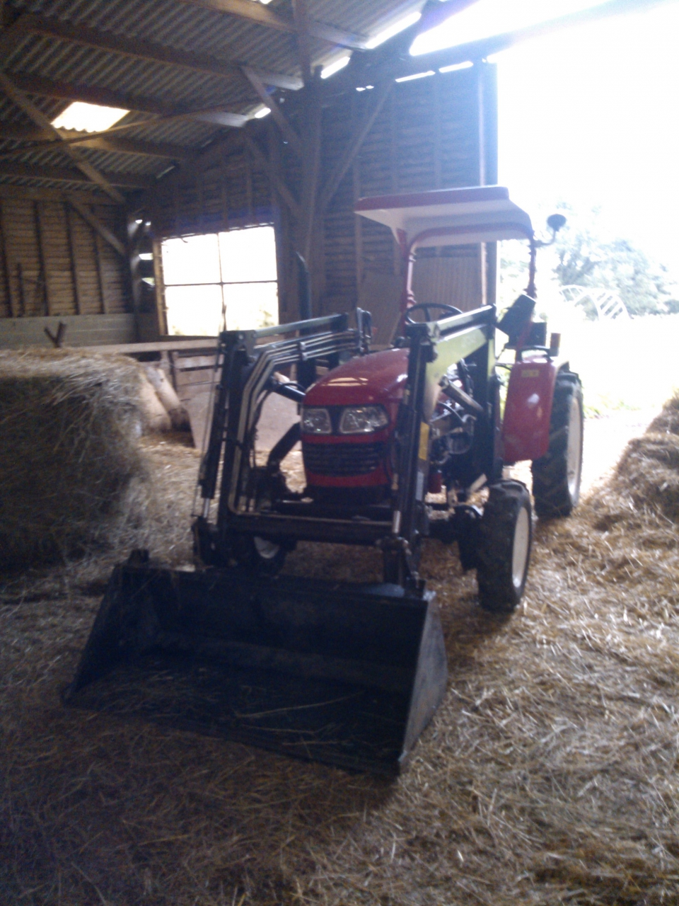 | Dire merci | Pour répondre aux questions sur le Foton on l'a acheté chez un concessionnaire de notre secteur. Comme tout est mécanique un gars qui s'y connait peu faire les réparations tout seul, les pièces se trouvent facilement (pas mal de sites donnent des infos, mais c'est souvent des sites américains, donc en anglais) . Les seules trucs qui ont "plié" tout de suite c'est les dents du pique-botte (qui faisait très "gadget" pour du travail agricole ) mais une fois remplacées par des plus costaud c'était bon.Pour trimbaler des trucs lourds il faut mettre des masses à l'arrière évidemment. ![]() jcd: Une balle-ronde de 180 bien pressée atteint les 600kg. |