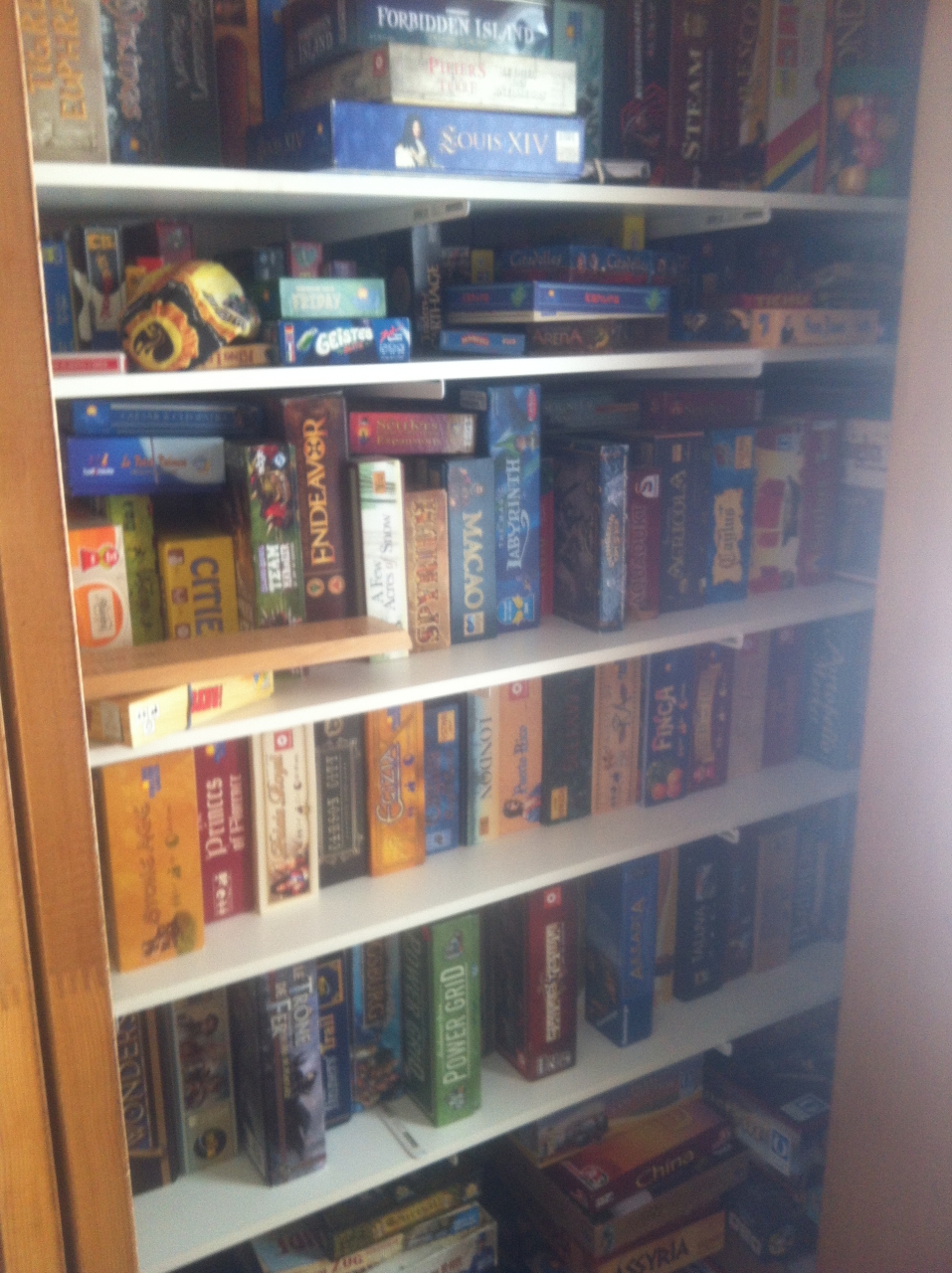 | Dire merci | Ah ben dans ce cas, pas le choix de coopérer en effet!! À la base, je ne suis pas de type coopératif non plus... mais celui là, je l'aime bien! ![]() Voici une partie de notre ludothèque, on ne voit pas très bien, mais ça donne une idée : ![]() Oui, on aime vraiment ça!! Pas encore eu le temps de jouer aujourd'hui... peut-être ce soir! |