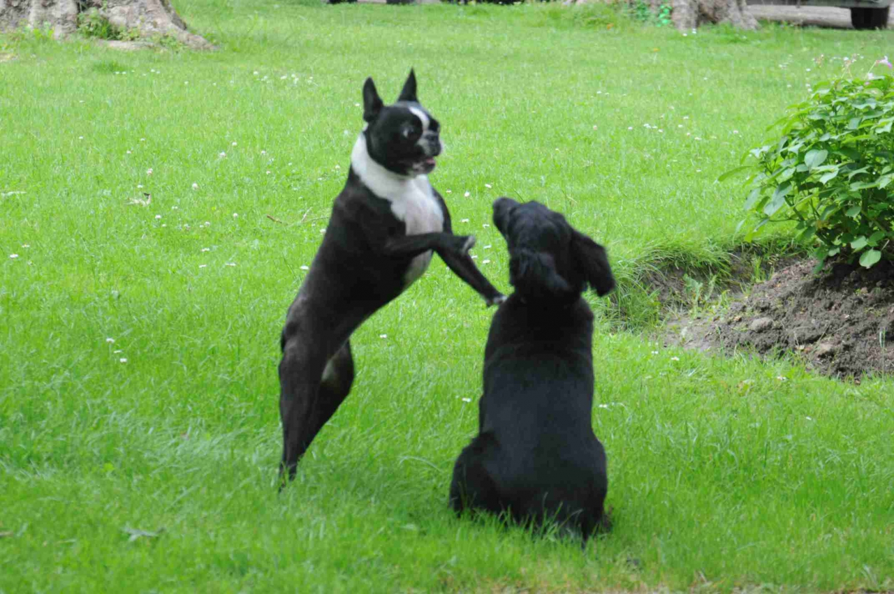 | Dire merci | Prends un Boston terrier , ça a toutes les qualités du BF mais sans les defauts. Ma Boston fait des marches de 10km sans faiblir , il n'y a que quand la temperature depasse les 28 ° c qu'elle se couche à l'ombre pendant les promenades. Aucun problème respiratoires , elle est géniale Epona en train de jouer avec un chiot ![]() Epona bébé avec mon landseer ![]() ![]() En fait c'est un boxer miniature ! ![]() |