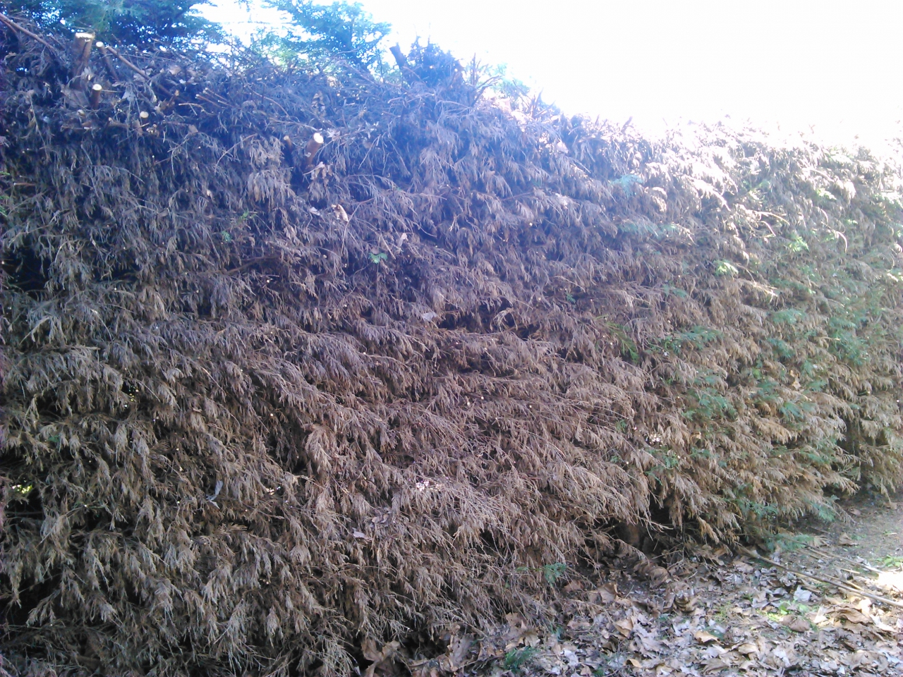 | Dire merci | Sur les photos, le taille haie n'a pas été utilisé. Ils ont tout ratiboisé au sécateur, et à la tronçonneuse pour les grosses branches et l'ététage.![]() (je pense qu'au taille haie, je n'aurais pas pu en enlever autant, ce serait moins moche...) |