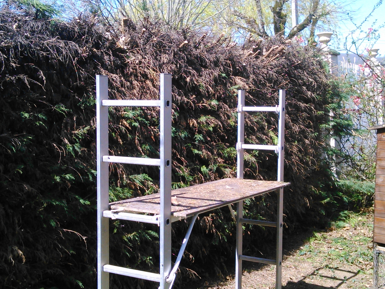 | Dire merci | vous êtes bien trop pessimistes !!! j'ai acheté une maison avec des haies (entre autres) de cyprès parfaits coupe-vent et pompe-humidité... je les ai donc fait rabattre ... de moitié dans tous les sens !! voyez la hauteur de taille ... ![]() on en a bien coupé 3 mètres ... ![]() c'est bien marron la dessous ![]() ![]() ![]() ![]() évidemment ça fait du déchet ! ![]() ![]() 3 ans après, c'est tout vert et il faut recommencer ![]() |