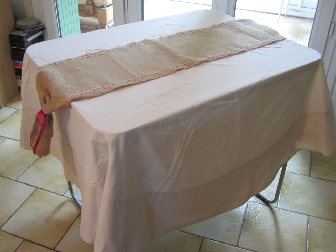 | Dire merci | J -11 !!! Ca avance a très grand pas ( pour notre plus grand plaisir !! ) Aujourd'hui, j'ai fait un test du "dressage" de nos tables de banquet ( ou plutot une table de camping et la caisse de transport du repas qui, recouverte d'une planche fera un support supplémentaire ! ). J'ai récupéré 2 nappes chez ma mamie ce week end : une qui était a ma maman et l'autre qu'elle avait depuis longtemps ! Et j'adore son coté rétro/vieillot ! ![]() ( avec un chemin de table maison, bricolé avec mes restes de jute, de la laine brodée et du ruban ) ![]() la fameuse caisse Le menu est bloqué, je commence a faire le listing de courses et il me reste a cirer les chaussures de Mr ( qui va se faire couper les tifs demain matin ). Bref, j'adore ce moment d'attente |