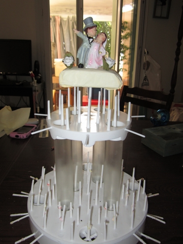 | Dire merci | Ohhh vous êtes choutes !! Nezlaine, en fait pour les photos c'est mon frangin qui va s'y coller ! Il a essayé mon reflex ce weed end ! On ne lui pas THE photo ( quoi que ) mais de beaux souvenirs avec le coeur qu'il y mettra ! Et puis avec les accessoires ce sera fun de toute facon ! Pour la pièce montée avec la figurine, voila le résultat ![]() ( en sachant que le socle en bas n'etait pas encore lavé ). Me languis de le remplir jeudi ! Ilou, mais j'addoooorrreeee les lanternes volantes !! Seulement chez nous c'est interdit a cause de la chaleur et donc des terrains cramés et on a très souvent du mistral ! A notre plus grand regret ! On en avait profité l'été dernier au mariage des cousins, c'etait juste magique ! Demain je prendrais le cadre en photo ! Je dois aussi aller avec belle maman qui veux nous offrir un arbuste pour le jardin ( on a choisit un seringua ) et lui vernir les pieds |