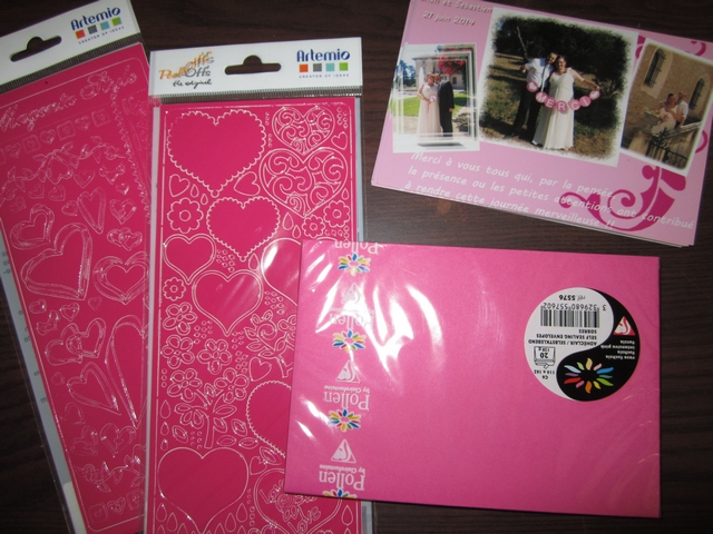 | Dire merci | J'ai trouvé de quoi m'occuper cette fin d'après midi tiens ! Comme j'ai recu nos photos/carte de remerciement ce matin ( commandée lundi soir, recue ce matin ! Efficace !! ) je suis allée chercher ce qu'il fallait pour les envoyer joliment : ![]() Et pour le fun ( et parce que je suis déjà un peu nostalgique ), notre voiture qu'on avait décoré vendredi avec chérichou ! ![]() ![]() |
