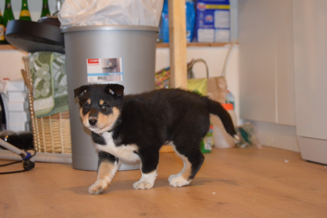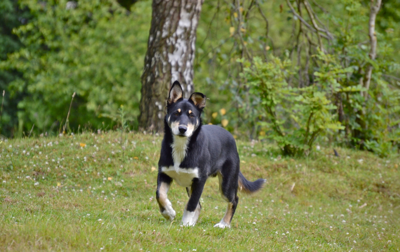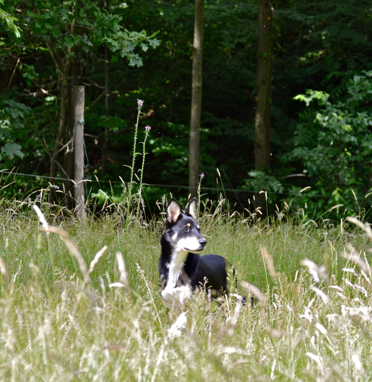 | Dire merci | il va etre costaud il ressemble de + en + a un berger j'aime bien le croisement border/ husky mais australien/ husky c'est pas mal aussi peut etre + pour la rando que pour la course faut voir!!! |