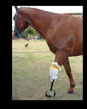 | Dire merci | C'est la jument que tu citais plus haut Mystic? C'est intéressant, mais j'imagine qu'elle ne peut pas garder cette prothèse toute une journée. |