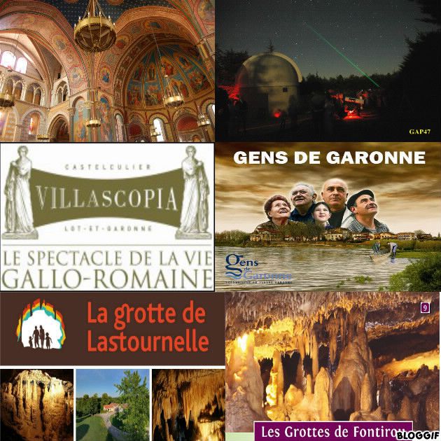 | Dire merci | Château des deux sœurs (Clermont-Soubiran) : Lien Musée Raoul Dastrac (Aiguillon) : Lien Festival de musique en Albret "la vie Parisienne... ou presque" (Lavardac) Lien Bungalow sur pilotis (Damazan): 35 euros/nuit pour 2 Lien Coopérative des vignerons de Buzet (Buzet sur Baïse): Lien Restaurant le « Moulin des saveurs » (Barbaste) : Lien Musée du liège et du bouchon + Expo « Design et liège » (Mézin) : Lien Croisières et location de bateaux sur la Baïse (Nérac): Lien Marché nocturne + Concerts (Nérac) : Lien Les thermes (Casteljaloux) : Lien Restaurant «Au bord de la source » (Sainte-Livrade-sur-Lot ») : Lien Spectacle équestre « Sur un air Tzigane » - Haras National (Villeneuve sur Lot) : Lien Concerts en plein air « Les mercredis de la cale » (Villeneuve sur Lot) : Lien Pigeonnier « les Huguets » (Villeneuve sur Lot) : Lien Asinerie (Douzains): Lien Savonnerie Saponaire (Monflanquin) : Lien Château de Bonaguil (Cuzorn) : Lien Les estivales d'Agen (Agen): Lien Cabane en bois (Bajamont) Lien Musée des beaux-arts (Agen) : Lien Boulevard des artisans d?art (Agen) : Lien Auberge du prieuré (Moirax) : Lien Chocolatier Franck Contini (Le Passage d?Agen) : Lien Estival Summer ? (Beauville): Lien Château de Madaillan (Madaillan): Lien Musée du pruneau (Lafitte-sur-Lot) : Lien Ferme de La Nauze : Lien Festival des vignerons (Duras) : Lien Yourte (Loubès-Bernac) Lien Hostellerie des ducs (Duras) : Lien Château de Duras : Lien Musée Albert Marzelles (Marmande) : Lien Jardins du cloitre de Notre-Dame de Garonne (Marmande) : Lien Festival de percussions (Barbaste): Lien |