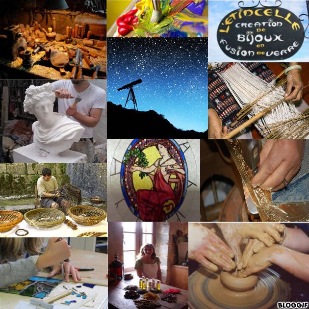 | Dire merci | J'oubliais les ateliers d'artistes et d'artisans (qui proposent visites et stages) : Fabrication de bijoux, Dinanderie, Tournage sur bois, Céramique, Vitrail, Gravure sur verre, Travail du cuir, Marbrerie d'art, Tissage manuel, Vannerie traditionnelle, Savonnerie, Sculpture, Peinture... Mais aussi conteurs, initiation à l'astronomie, cueillette et utilisation de plantes sauvages et médicinales, etc...![]() |