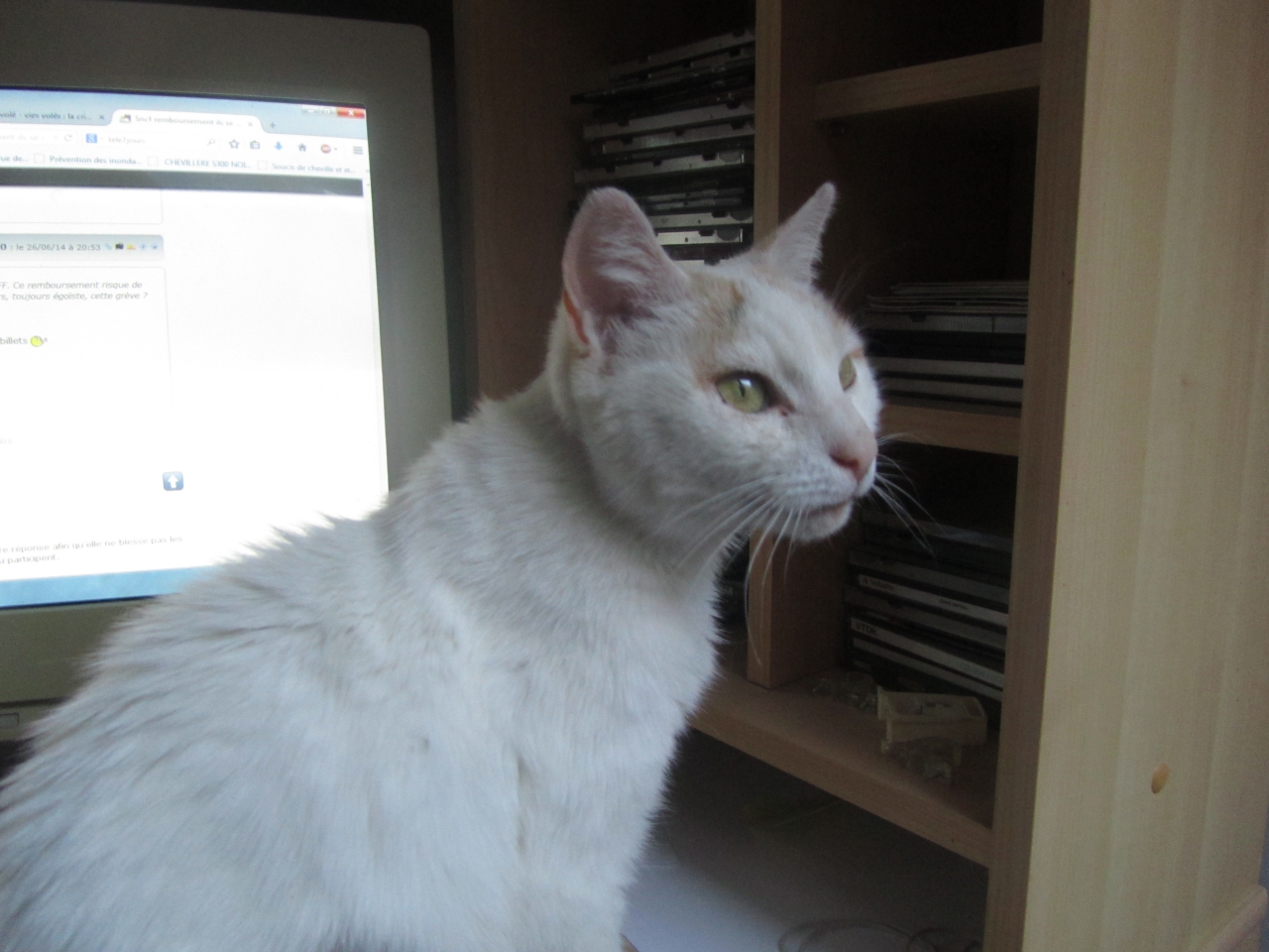 | Dire merci | Miss tache de javel, emmerdeuse et envahissante a souhait![]() Et si quelqu'un recherche une chatte plutot simpa mais associable avec les autres chats ![]() |