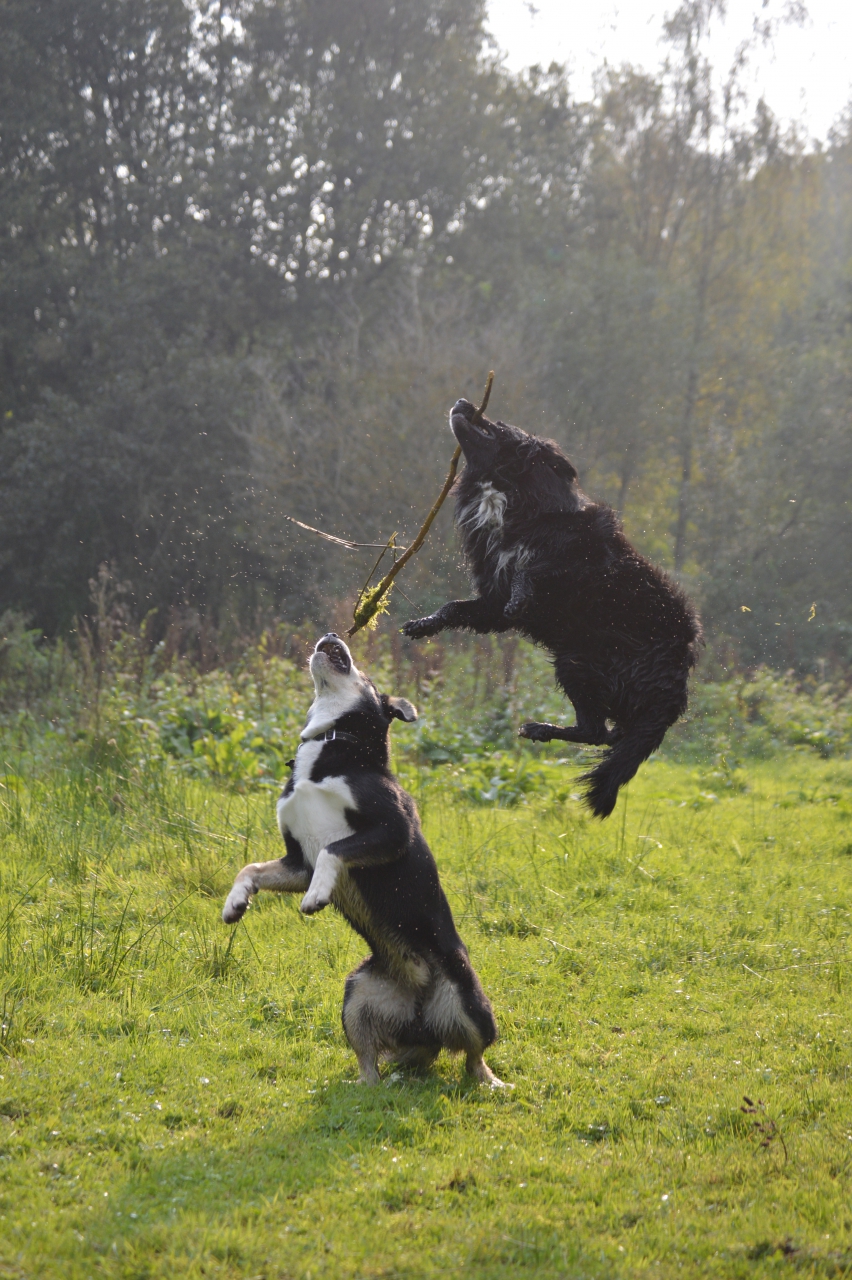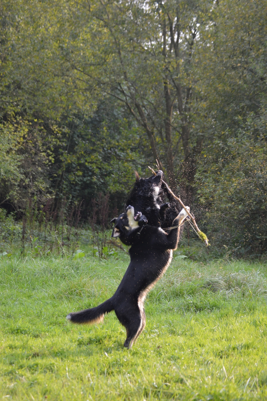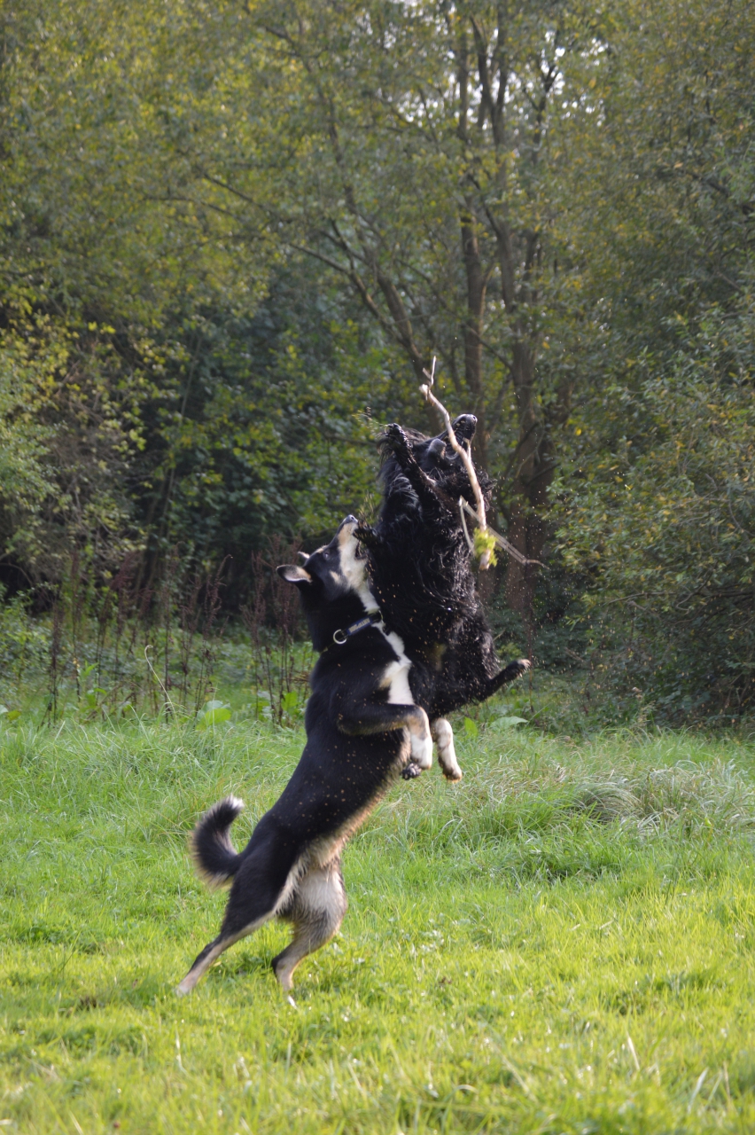 | Dire merci | oui mais pour le rattrapage de baton, le petit noir est monté sur ressorts aussi ! La détente de ouf qu'il a le bestiau ! Gouk est mis à rude concurrence là quand même ! Son pull a capuche, c'est un pull pour humains ou pour chien ? il est vraiment extra dans tous les cas ! |