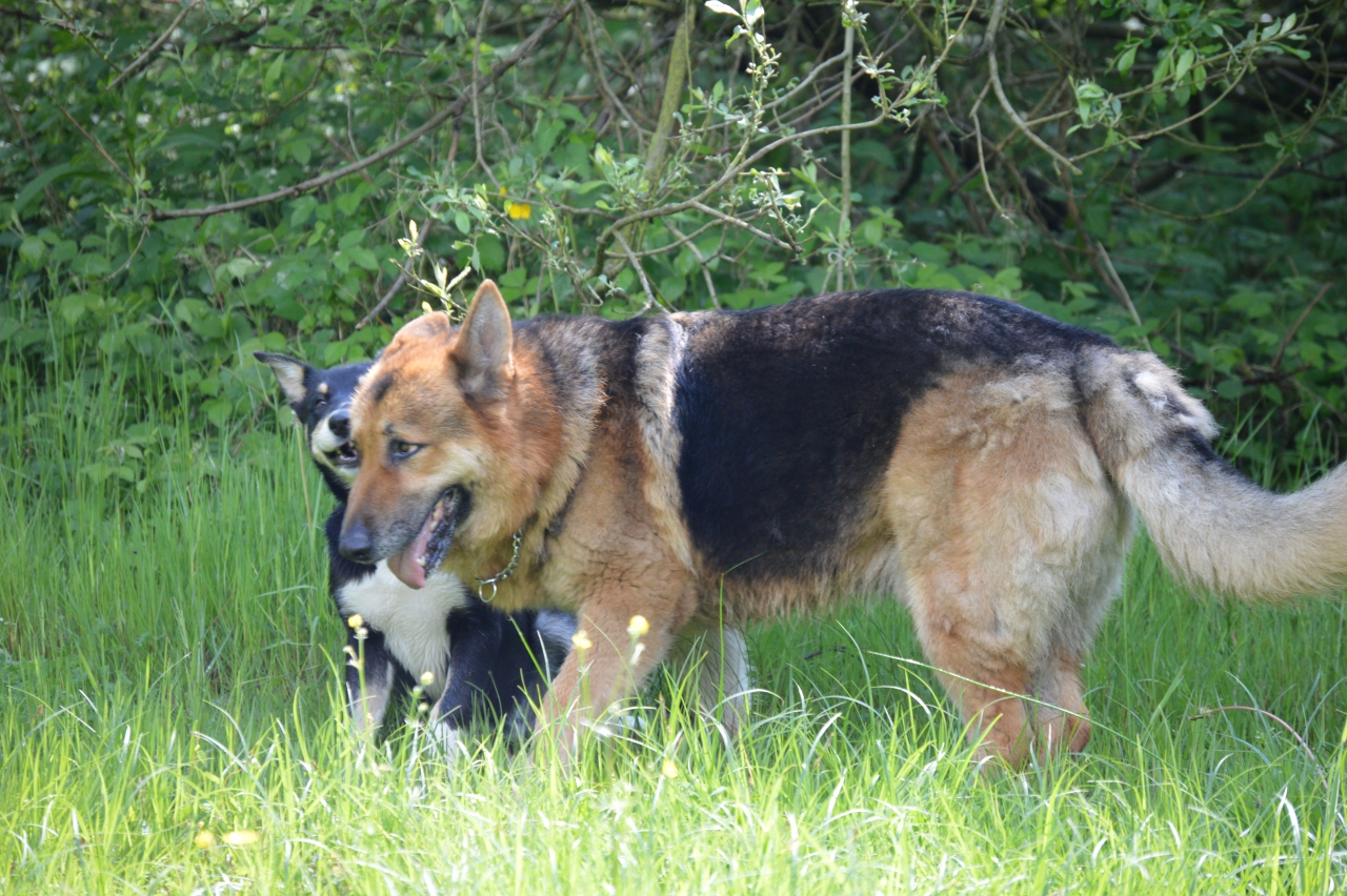 | Dire merci | Bonsoir, je suis toujours là ! Moins active mais toujours là ![]() Niveau nouvelles, Gouk va super bien, 5 ans, toujours à fond la forme. Il a plein de copains chien et nous accompagne en balade à cheval. Il s'est fait attaqué plusieurs cet été, du coup il est devenu un peu plus dominant avec les mâles non castrés. En raison d'un minimoi en route, je l'ai castré chimiquement en septembre histoire qu'il n'associe pas la castration à la naissance et il a été castré définitivement samedi passé. Il y avait aussi de plus en plus de personnes qui amenaient des chiennes en chaleur au manège donc j'ai finalement pris la décision de couic couic, donc pas de mini Gouk ![]() Il y a 2-3 semaines : Allez, j'peux venir en piste ? Steuplaaaaait! ![]() Il adoooore sauter ![]() ![]() Toujours super over méga la classe ![]() Avec une partie des copains ![]() |