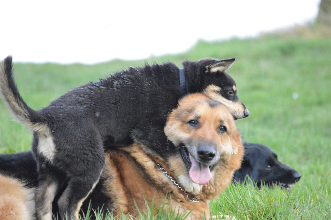 | Dire merci | Elle en avait même 2 mais le berger allemand est mort il y a quelques mois (à la base, c'est celui qui jouait le plus avec Gouk d'ailleurs c'est depuis qu'on est allées à la mer avec le noir et Gouk qu'ils jouent ensemble )![]() Tête de bébé vampire! ![]() Son grand pote! ![]() Vas-y que je profite que tu sois couché pour te sauter dessus ![]() ![]() Non non, j'pique pas le bois, j'pique juste le chiot! ![]() Pourtant le berger allemand était très dominant donc on s'est demandé comment il allait réagir et.... C'était un vrai papy gâteau! A leur première rencontre, Gouk ne comprenait pas qu'il devait passer sur le pont pour nous rejoindre (pont assez bizarre) et le gros est allé le rechercher pour lui montrer où aller, c'était vraiment ça, trop adorable! |