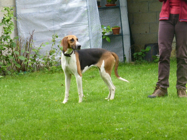 | Dire merci | Elle n'a reçu aucune autre éducation que celle inculquée par sa mère, qui elle même ne connait que la meute, l'enclos et la chasse. En deux jours elle a du avaler beaucoup d'informations : voiture, maison, collier, laisse, nettoyage d'oreilles, plein de gens inconnus, chats ... ma foi elle est de bonne composition, réservée mais pas paniquée, aucune agressivité, elle se pose juste des questions. Dans quelques jours elle s'en posera nettement moins, la confiance va vite s'installer ![]() |