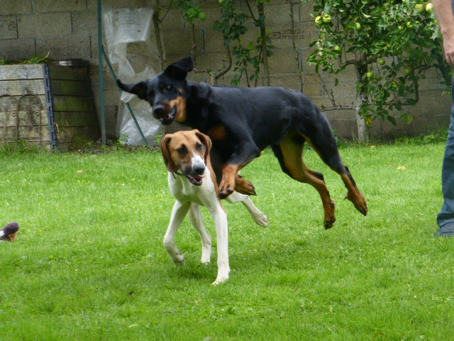 | Dire merci | Bidi ... la délicatesse incarnée pour répondre à casimir, les chiens courants ne sont pas plus fugueurs que n'importe quel chien de chasse ... et gros avantage de ceux là, ils rappliquent dès qu'ils voient un cheval. |