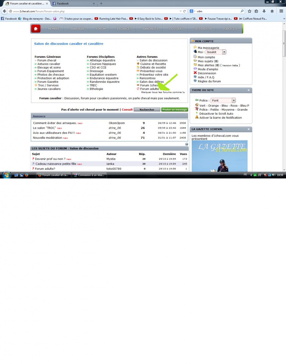 Déconnecté | L'autre forum de discussion c'est le forum1cheval, juste au dessus du forum adulte. Mais on n'y a accès que si on est connecté ![]() |