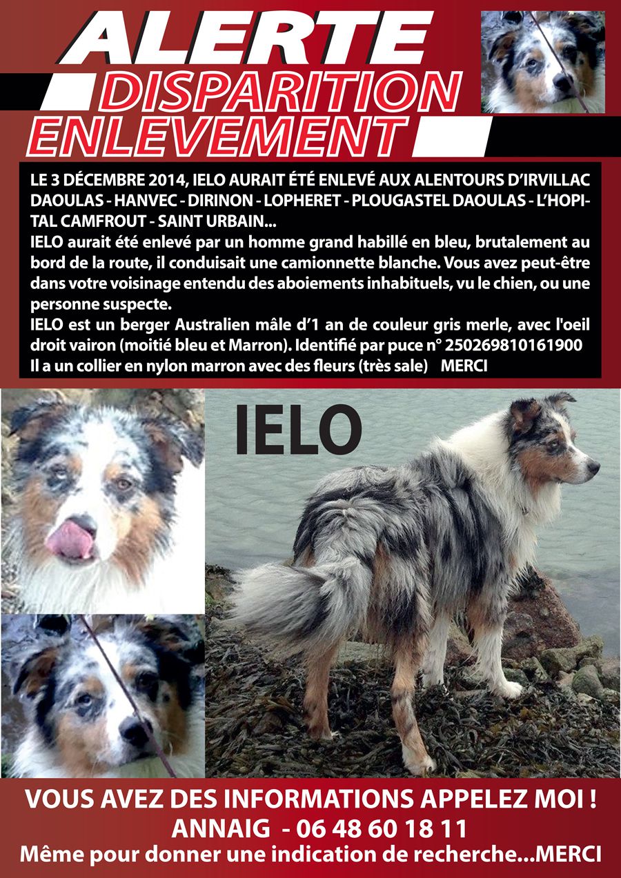 | Dire merci | Ielo a été retrouvé ce matin, il a probablement une patte cassée, sa propriétaire est chez le véto. |