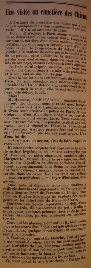 | Dire merci | Création du cimetière animalier à Paris.![]() ![]() |