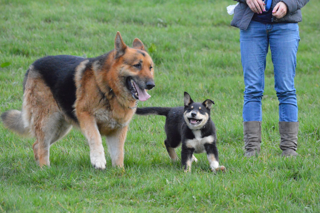 | Dire merci | Petit résumé de l'arrivée du nouveau venu . Ça se passe pas trop mal avec Leroy et les chats .Il est relativement soumis d'un point de vu hiérarchique , ce qui ne pose pas de problème au niveau de la nourriture . Un petit peu têtu , mais c'est gérable . Dans l'ensemble , il est plutôt calme . Sinon , il marche pas trop mal en laisse et sait s?asseoir ! Leroy et lui ont compris le " Chacun sa place ! " , car si je disais " A ta place " cela perturbait mon chien . |