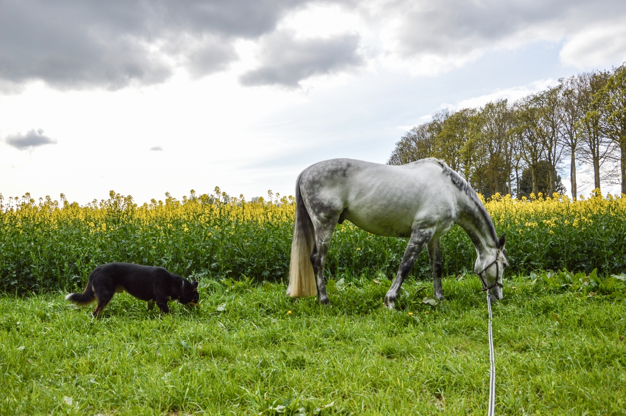 | Dire merci | Et préférant avoir un chien en appart qui est souvent en promenade plutot qu'un chien en maison qui ne voit que le bout de son jardin, au final, ca ne bloque plus autant que ca pour nous choupifresh je suis 100% d'accord avec toi j'ai un bout de jardin mais je suis souvent en extérieur avec mes chiens ... avoir un chien et ne pas le promener, je trouve cela paradoxal ! Autant ne pas en avoir ... c'est autant un plaisir pour eux que pour nous Puis les miens sont habitués à aller promener donc j'ai pas le choix C'est chouette qu'il s'adapte à la vie de chien de berger et avec ce que tu dis, il a l'air de bien adoré son job! j'ai l'impression qu'il aime ça oui, bien que pour l'instant ça reste un jeu pour lui mon homme attaquera les stages quand Malko aura plus d'un an ... pour l'instant il le prend juste et lui montre un peu, ça aide qu'il soit avec l'autre chienne dressée pour comprendre En attendant les stages, on paufine les ordres comme le stop, pas bougé et le rappel ![]() Il est vraiment impressionnant, faudra que je vous le filme, il ne se laisse pas faire et contrairement à notre chienne de troupeau, il est vraiment très dissuasif quand une vache ou un veau lui tient tête Pour l'instant, il ne s'est pas fait peur et n'a jamais pris de coup de pied ... on verra le jour où ça arrivera |