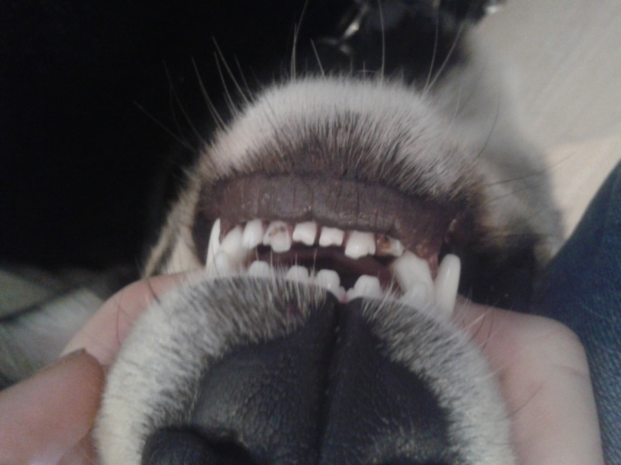 ). Je l'ai caressé partout mais voilà, en rentrant, quelque chose m'a alertée et j'ai regardé ses dents, il en a deux de cassées