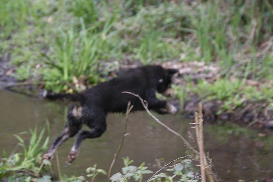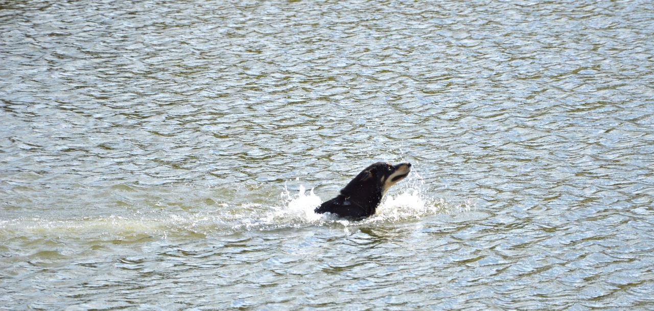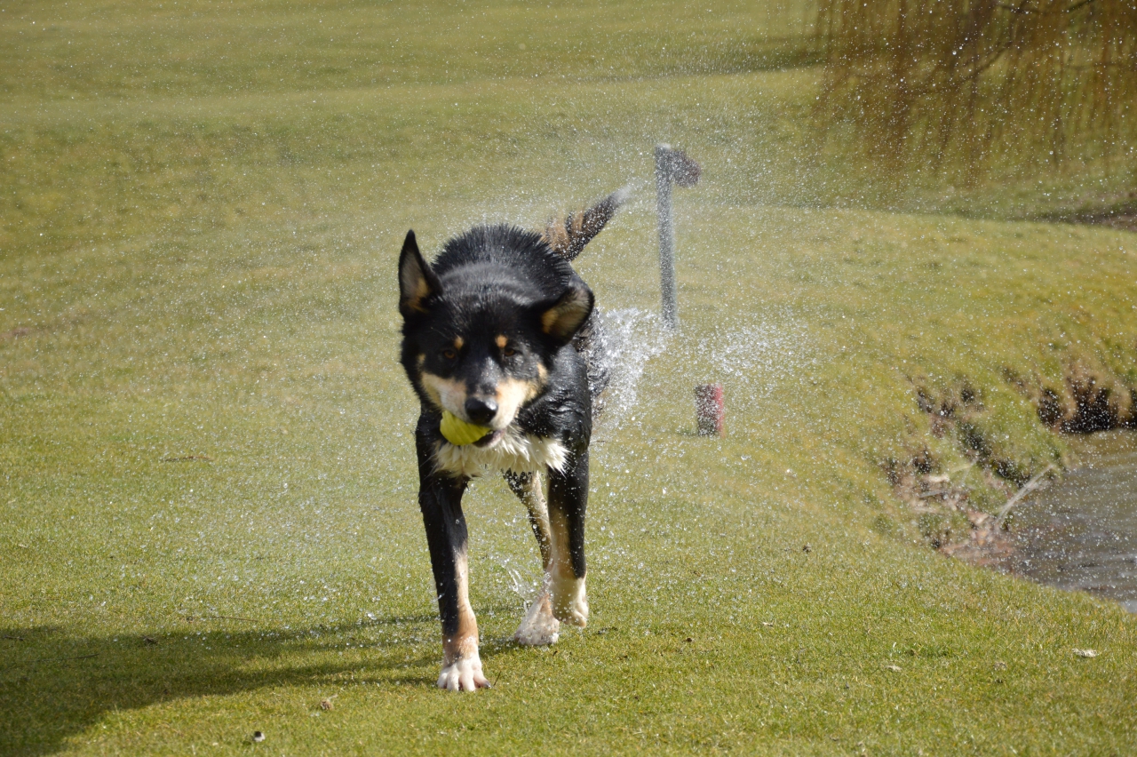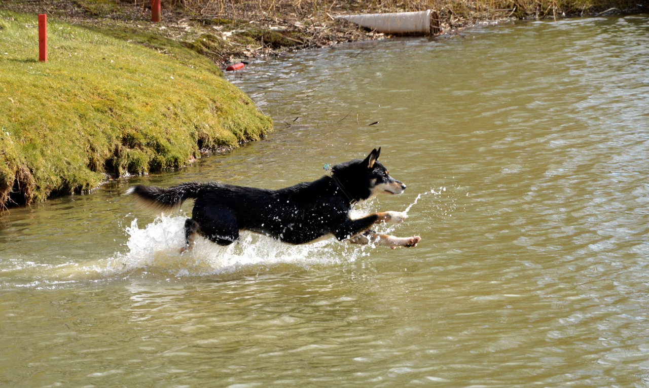 | Dire merci | Izelle adore l'eau aussi, quelque soit le temps, s'il y a une flaque, un fossé, une rivière ou un étang, elle saute ! Du coup, je lui ai appris l'ordre "plouf", c'est vachement pratique pour un rinçage express quand mademoiselle est toute sale. Et je peux aussi contrôler ses baignades du coup. |