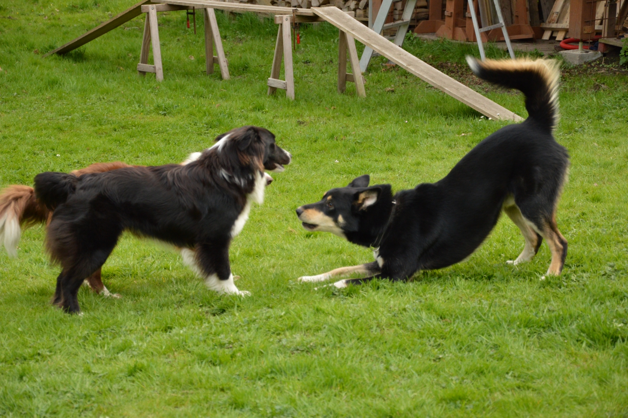 | Dire merci | Demande de jeux envers moi et envers un autre chien![]() ![]() Soumission ![]() ![]() Soumission/jeu ![]() |